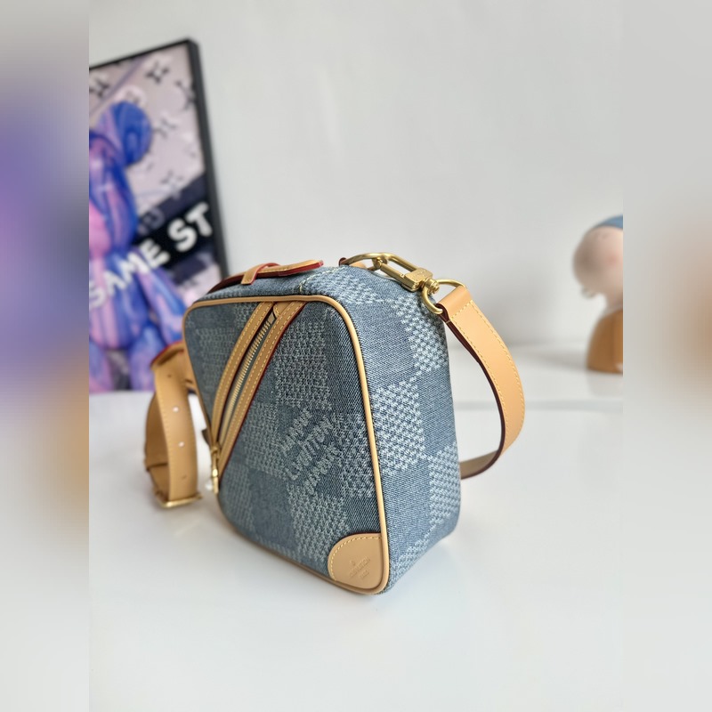 『Dynaaminen siru tiskipakkauksella』Ainutlaatuinen todellinen otos ulkomaisesta alkuperäisestä N40706:sta Tämän Chess-lähettilaukun ainutlaatuinen kokoonpano osoittaa kunnioitusta brändin klassiselle Damier-sekille ja esittelee Harrell Williamsin kesäisen tulkinnan Damier-elementeistä Damier Denim 3D -puuvillakankaalla. GOTS (Global Organic Textile Standard) -sertifioitu puuvillamateriaali tuo pehmeää tekstuuria ja helmillä varustettu vetoketjupää lisää eleganttia tunnelmaa. Koko: 24×24×8 cm