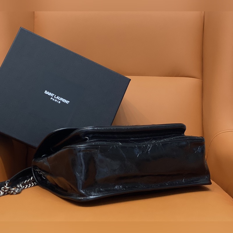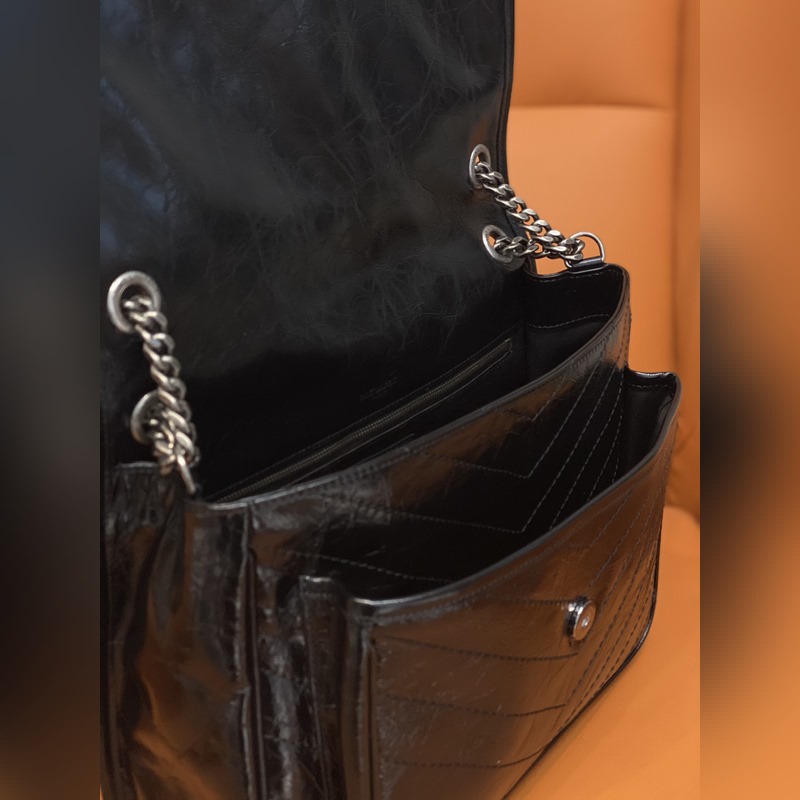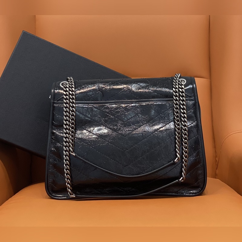 Aito YSL-laskuri uusin päivitetty versio 498883D# musta koristeltu nahkapäällysteisellä YS*-logolla, harjattu vintage-hopea laitteisto nahkavahvistetulla olkahihnaketjulla, jota voidaan käyttää yhdellä olkapäällä tai koko vartalon Grosgrain-vuori, magneettinen nappikiinnitys f Sisäpuoli: yksi päätasku, yksi magneettitasku ja yksi vetoketjutasku takana, yksi vetoketjutasku Taskun koko: 32x24x10cm Tehdas ja lahjapakkaus