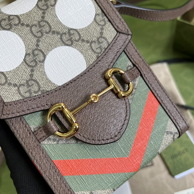 《Täydellä alkuperäisellä vihreällä laatikkopakkauksella》Tämä tuote on upea valikoima värikkäitä ja kirkkaita geometrisia kuvioita, jotka muistuttavat jockeyjen majesteettisia univormuja. Nimen inspiraationa on ollut hiekkaympyrä tai satulapukualue ennen kilpailua kilparadalla. Ennen kilpailua hevoset juoksevat ja lämmittelevät täällä, jotta hevoskilpailua seuraavat katsojat voivat sydämessään valita voittajan. Ainutlaatuinen painettu kuvio saa tämän Horsebit 1955 -sarjan minikäsilaukun korostamaan eleganttia viehätystä.
