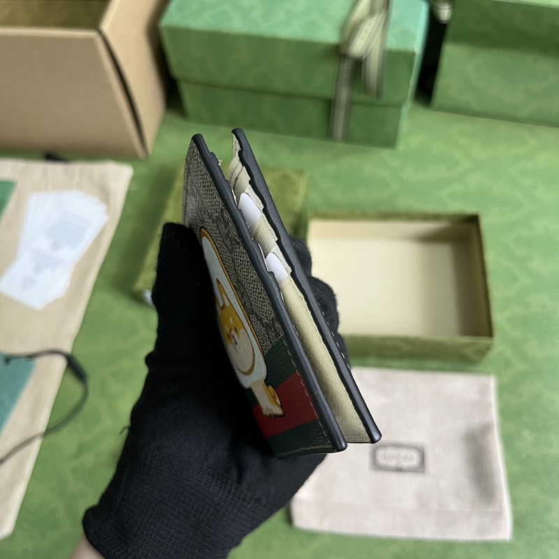 Gucci Animal Print -lompakko. Amerikkalainen kuvittaja ja suunnittelija Angela Nguyen, joka tunnetaan myös nimellä “Pikaar”, käyttää inspiraationa popkulttuuria, animaatiota ja eläimiä ja lisää hauskuutta valmiisiin vaatteisiin ja asusteisiin käyttämällä eloisia printtejä tai koruompeluksia. Tässä korttikotelossa hänen luova inspiraationsa on Gucci Animal Printin muodossa. Gucci Animal Print Beige ja Ebony GG Supreme kangas, valkoiset nahkaputket ja Angela Nguyen “Pikararin” taide Sisustus: 8 korttilokeroa, 2 setelitaskua.