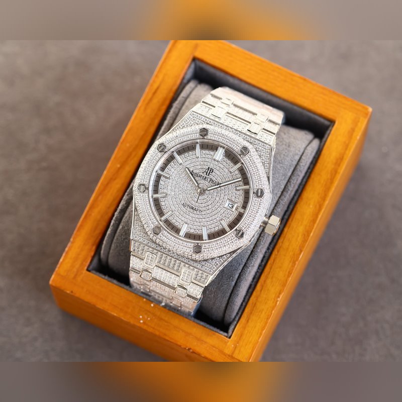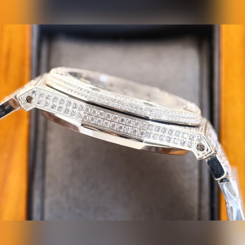 Kansi on upotettu tuontitimanteilla. Kruunu on valmistettu kuusikulmaisesta ruostumattomasta teräksestä ja yläosa on harjattu ja kiillotettu. Osaa 7750 on muutettu alkuperäisestä liikkeestä. 6-numeroinen pieni sekuntitoiminto on yhdenmukainen alkuperäisen kanssa. Peili on valmistettu maahantuodusta safiirilasista. Kotelo on valmistettu maahantuodusta 316 ruostumattomasta teräksestä. Hihna on sovitettu maahan tuodun avoimen muotin fluorikumihihnan kanssa. Solki on alkuperäinen taitettava solki. Pään jyvärakenne on yhdenmukainen laskurin kanssa ja sitä voidaan hienosäätää. Se istuu paremmin käteen ja on mukava käyttää. Se on välttämätön jumalattareille. Useiden kiillotus- ja kuorrutusprosessien jälkeen AP:n ainutlaatuinen kahdeksankulmainen kehys ilmaisee vihdoin teräviä viivoja.