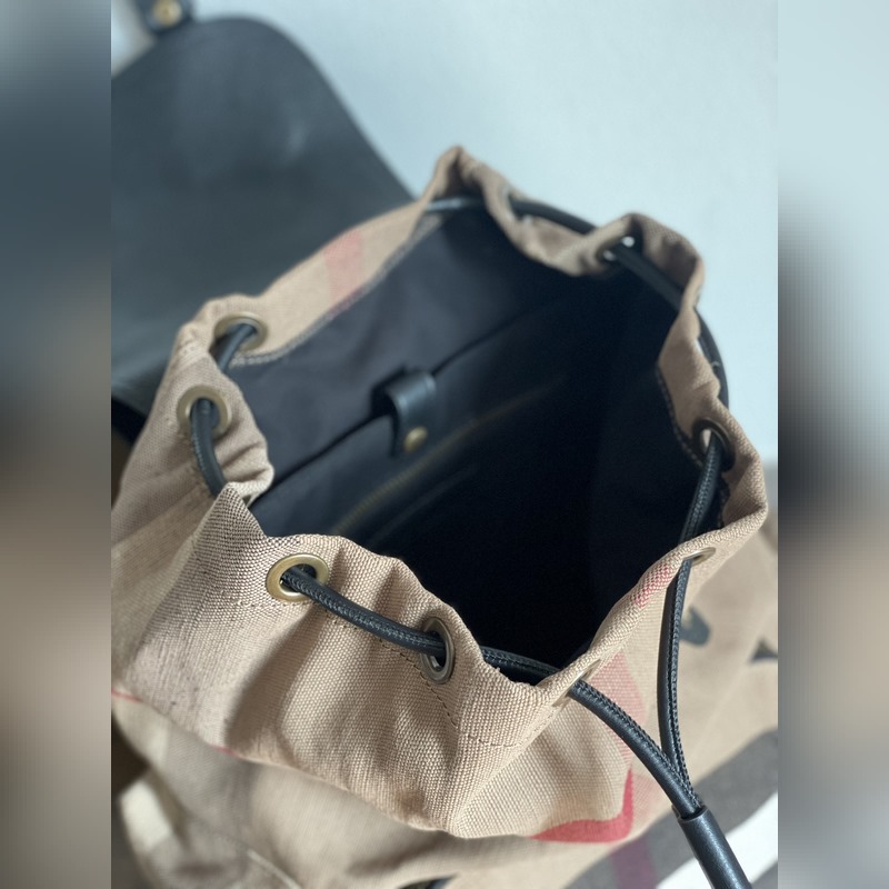 Klassinen “Rucksack” on muotinäytöksen tärkein lisävaruste. Suuri malli on valmistettu kestävistä canvas-shekkipaneeleista ja se on koristeltu hienolla rakeisella nahalla. Olkahihna on pehmustettu mukavuuden vuoksi. Sen pehmeä ja rento muoto voidaan jäljittää 1900-luvun alun historiallisten arkiston sotilastyyliin, ja tälle pohjalle on lisätty useita toimivia vetoketjutaskuja.