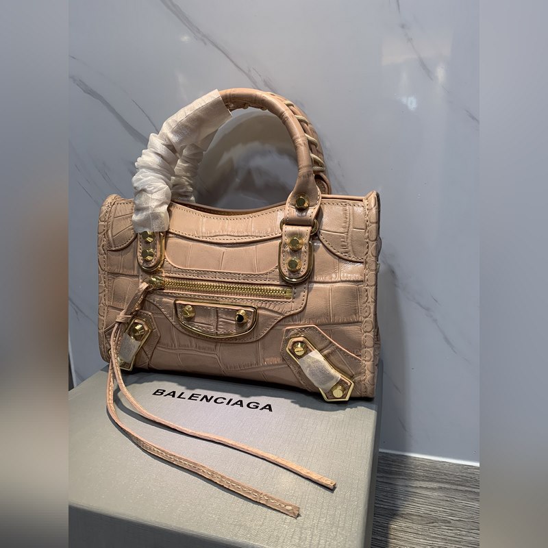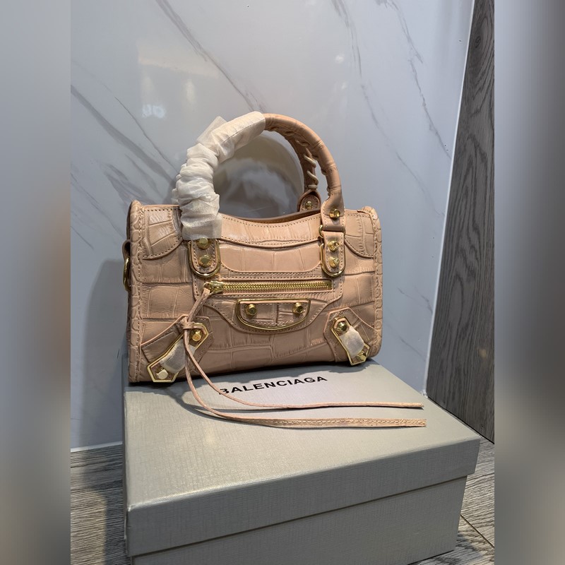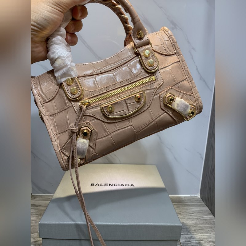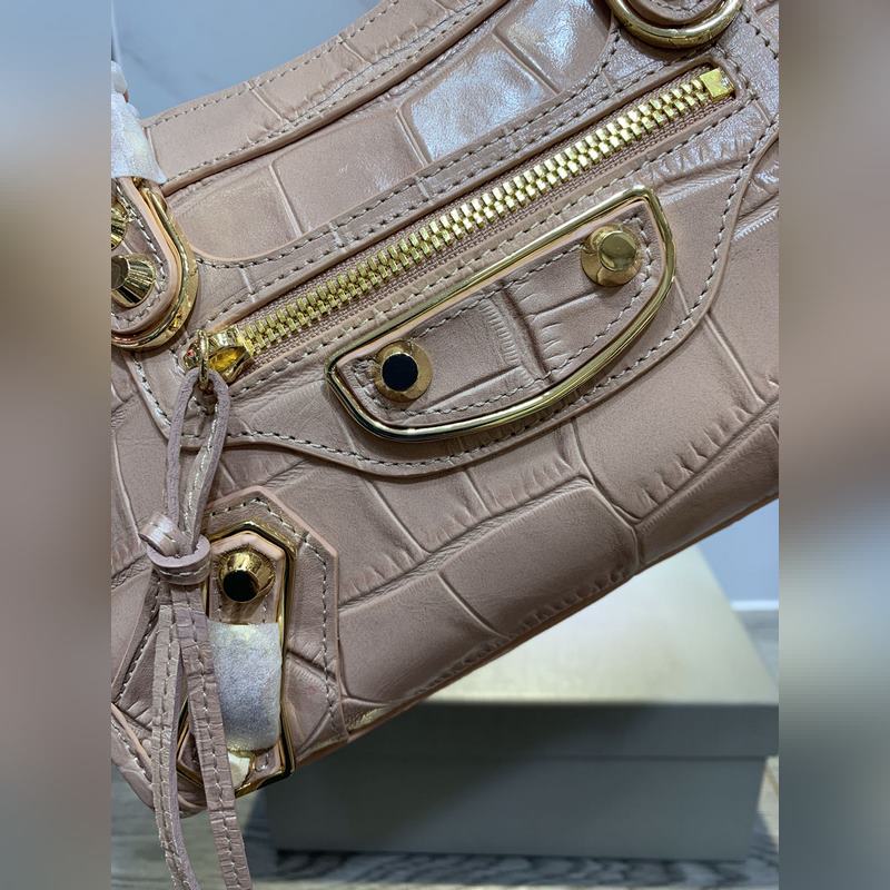 Balenciaga moottoripyörälaukku krokotiilikuvioinen vaaleanpunainen pieni 24cm koodi: BLSJ96181000