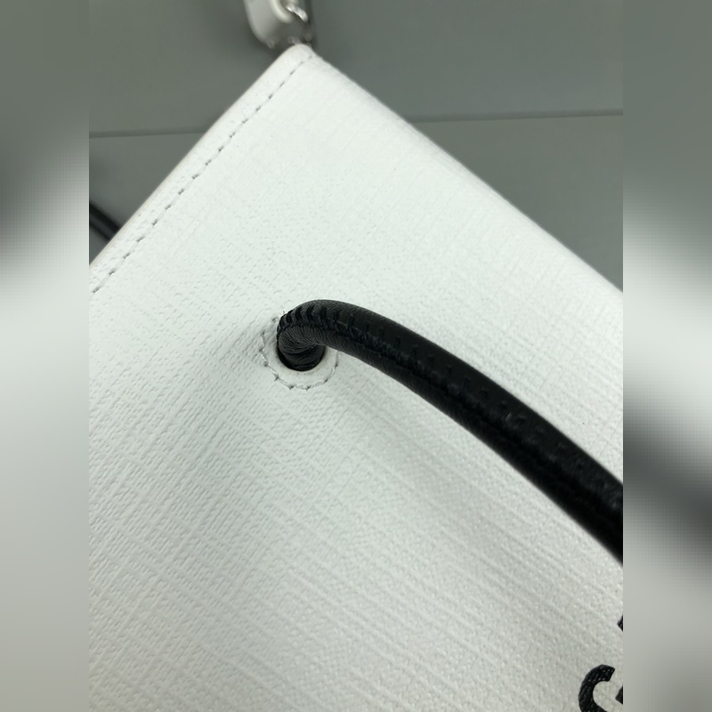 Paris BALENCIAG pieni neliönmuotoinen ostoskassi Valmistettu tuontihammastikusta vasikannahasta Ohut nappan karitsannahkakahvat Yläpuolella magneettinappi Vetoketjullinen tasku sisällä Yksi paikkatasku Palladium-viimeistely Irrotettava ja säädettävä olkahihna Laukun pohja voidaan taittaa paperikassin tavoin Koko 19*8*21,5