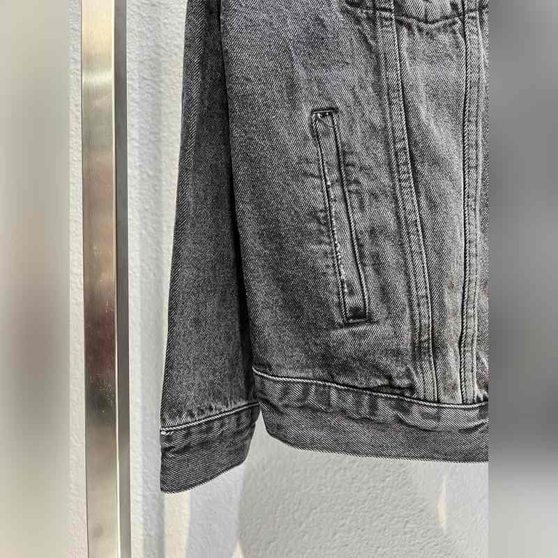 Räätälöity ja värjätty farkkukangas ympäristöystävällinen denimkangas, paksu ja tiivis, korkealaatuinen, korkean lämpötilan raskas pesuprosessi, trendikkäät elementit, taskut molemmilla puolilla, Paris-metallinapit, pystysuora kolmiulotteinen etupaneeli, jossa Pariisin uudenvuoden cabinet, uusin tiikerilogo. lasketut olkapäät, löysä istuvuus, unisex-tyyli, musta väri, koot 44/46/48/50