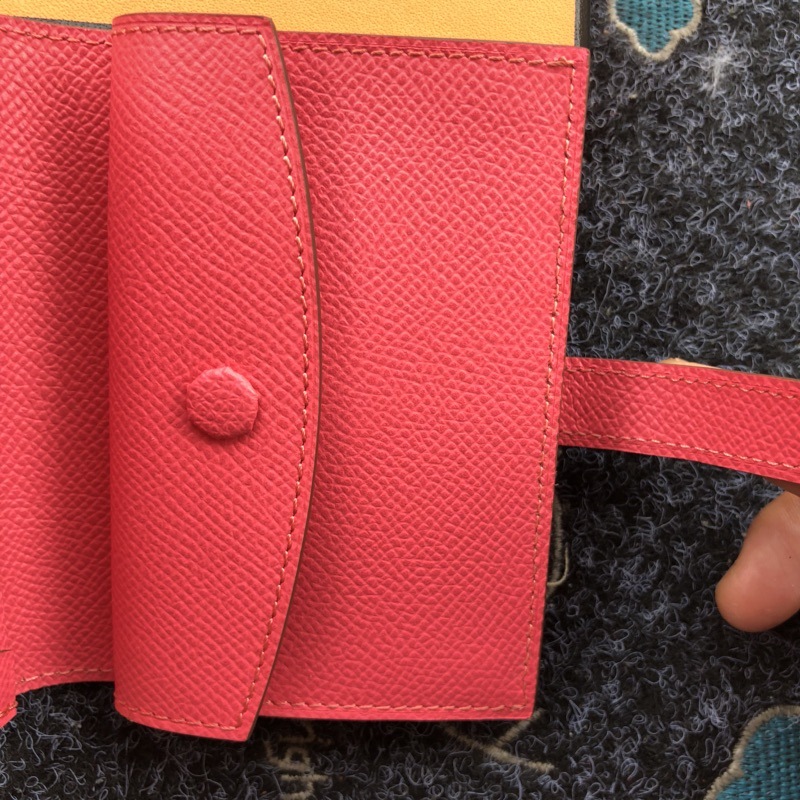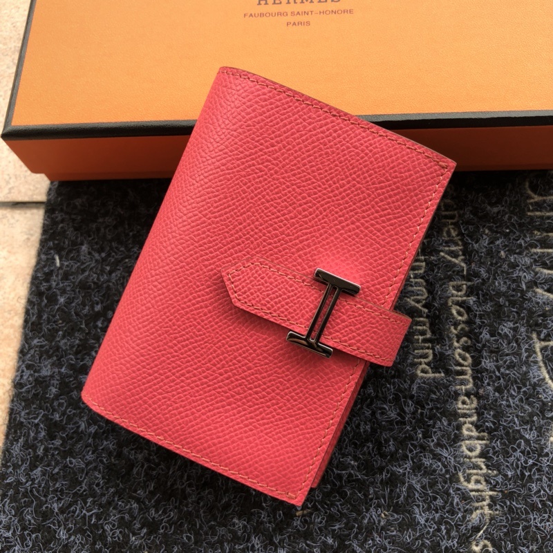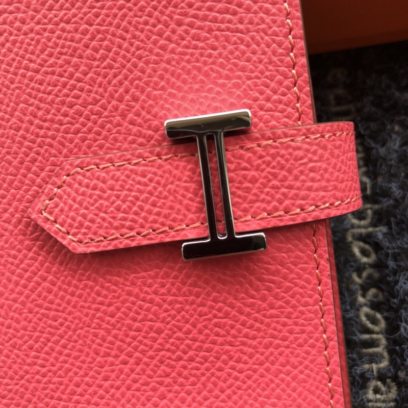 Bearn napin korttipidike 11,5 cm maahantuotu Epsom-nahkainen huulipuna vaaleanpunainen hopea solki unisex-tyyliin