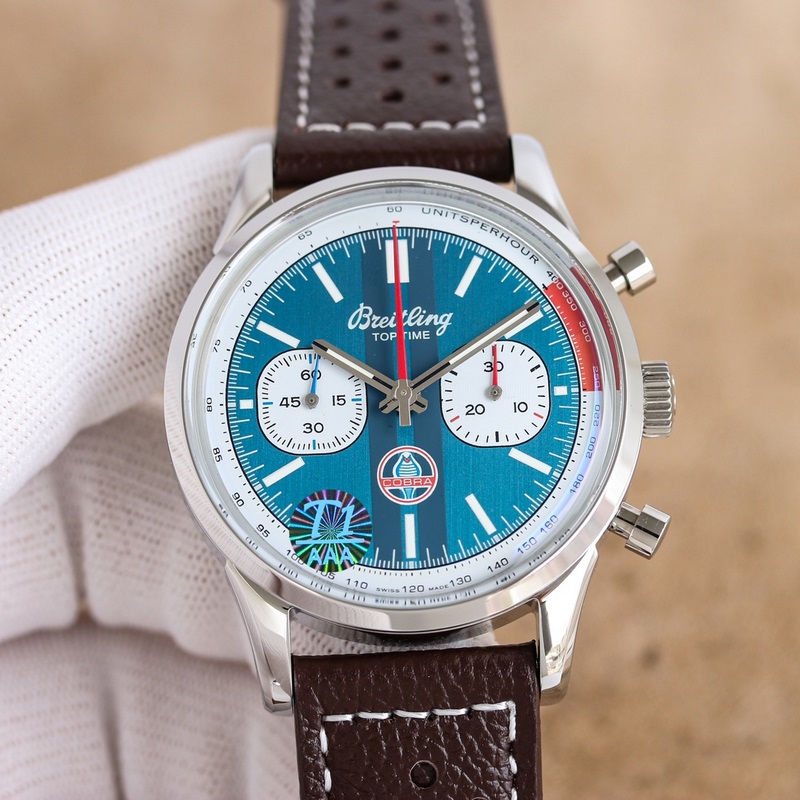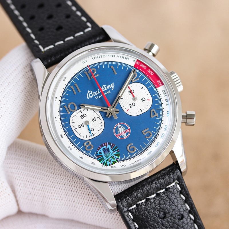 TOP Breitlingin uusi kronografi (Navitimer), Breitling tulkitsee klassisen kellon uudelleen rohkeilla väreillä. Koko on 42 mm, ja iteraatio on epäilemättä aito ja ainutlaatuinen kronografikello ainutlaatuisella kansipinnalla. Siinä on 316 ruostumattomasta teräksestä valmistettu kehys helpon otteen takaamiseksi ja se suojaa tehokkaasti kaksipuolista häikäisemätöntä safiiripeiliä. Kellotaulu on saatavana mustana, sinisenä ja valkoisena, kaikki koristeltu suurikokoisilla valoisilla osoittimilla ja tuntimerkeillä. Täydellinen ammattitaito, tervetuloa maistamaan