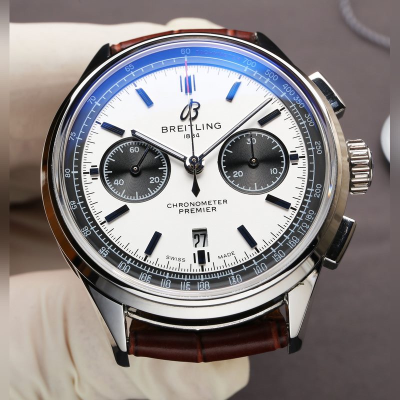 J5 Uudet tuotteet BL Uusi Breitling B01 Kronografi Premier-sarjalla on suuri merkitys Breitlingille. Tänään Breitling on käyttänyt tätä nimeä uudelleen lanseeratakseen uuden Premier-sarjan, jossa yhdistyvät täydellisesti toimivuus ja tyyli. Se osoittaa laatua, suorituskykyä ja klassista muotoilua, perii historiallisten kellojen elegantin maineen, ja sen laatu ja suorituskyky ovat odotusten mukaisia. Breitlingiä on aina kehuttu pilottikelloistaan ja sukelluskelloistaan, ja odotettu Premier-sarja on suunniteltu kaupunkielämään ja rikastuttaa “maa”-tuotesarjaa Breitlingin kolmella pääalueella. Materiaali: 316L ruostumaton teräs Halkaisija: 42 mm Peili: Kannen kaareva safiiri, kaksipuolinen häikäisynestokäsittely Kotelon takaosa: ruostumaton teräs, Kruunu: ei-kierrettävä, kaksoistiiviste. Solki: alkuperäinen yksi yhteen solki. Vedenpitävä: 120 metriä, Liike: Asia-7750 liike