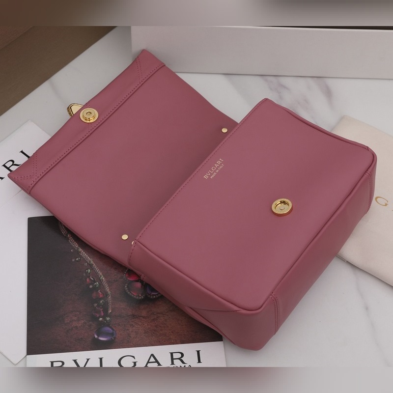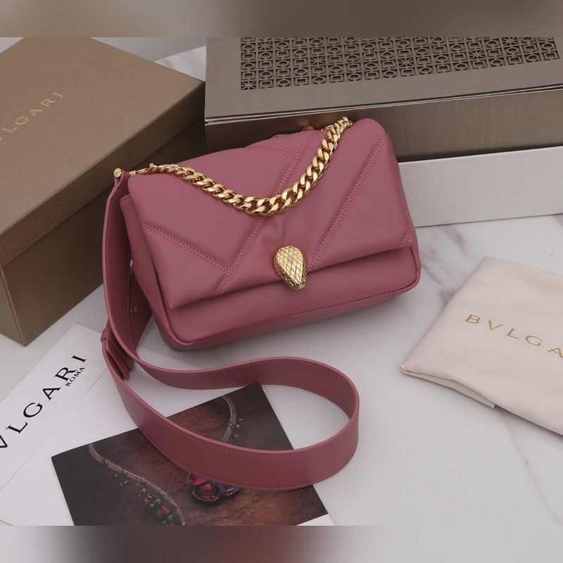 Med ett stort grafiskt mönster och djärva metalldetaljer är det svarta kalvskinnet på huvuddelen av denna väska ännu mjukare och slätare. Det ruteniumpläterade ormhuvudslåset i mörk mässing av SERPENTI, inspirerat av en Bvlgari vintageklocka från 1960-talet, är dekorerad med små svarta onyxfjäll i mitten och röda emaljögon, som visar en ny twist. Denna handväska är utrustad med en justerbar och avtagbar axelrem i läder, som kan användas som en handväska eller en clutch, för att uppnå mångsidiga funktioner, lämplig för dag och natt. Mellanstor, med ett förvaringsfack, en intern ficka med dragkedja och en invändig öppen ficka. Namnskylt av metall på insidan graverad med märkeslogotypen Bvlgari.