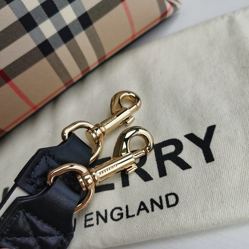 Insidan och exteriören är gjorda av vintage rutor och mjukt läder i tre toner. Remmarna är inspirerade av märkets ikoniska trenchcoat