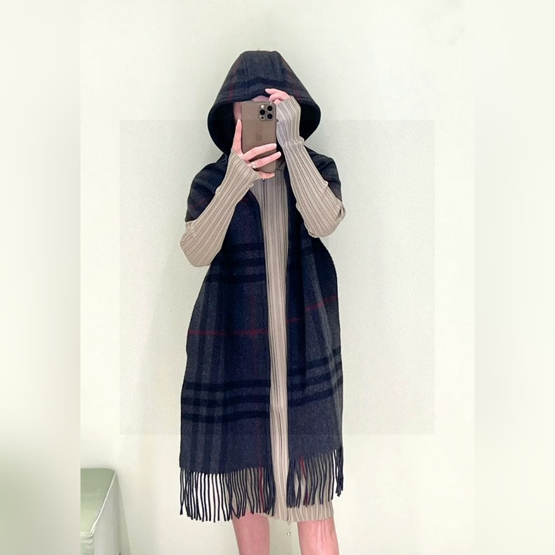 ZG Synchronized Hot Burberry B hupullinen ruudullinen huivi on kaunis kaikin tavoin. Se tunnetaan Burberryn kauneimpana tyylinä tänä vuonna. Se on neutraali tyyli ja klassisin ruudullinen hupullinen huivi. Se on valmistettu villan ja kashmirin sekoituskankaasta ja koristeltu hienolla Burberry-ruudulla. Se on valmistettu skotlantilaisessa työpajassa, jolla on pitkä, 200 vuoden historia. Kangas liotetaan ja pestään Highlandsin kirkkaassa lähdevedessä, jonka jälkeen fleeceharjausprosessilla luodaan huolellisesti pehmeä kosketus. Suorakaiteen muotoiset päät on koristeltu tupsilla. Koko: 30*220cm