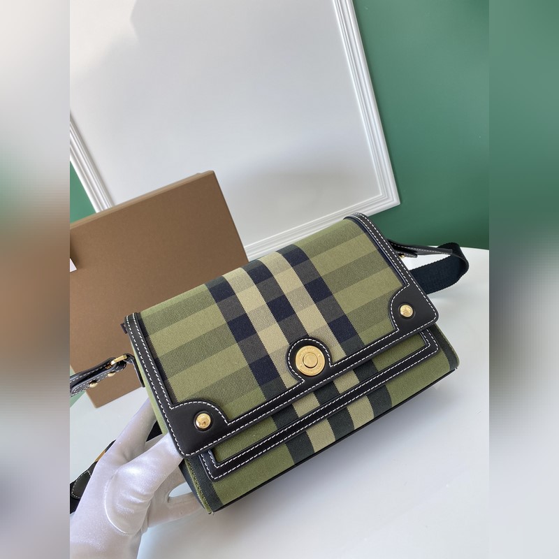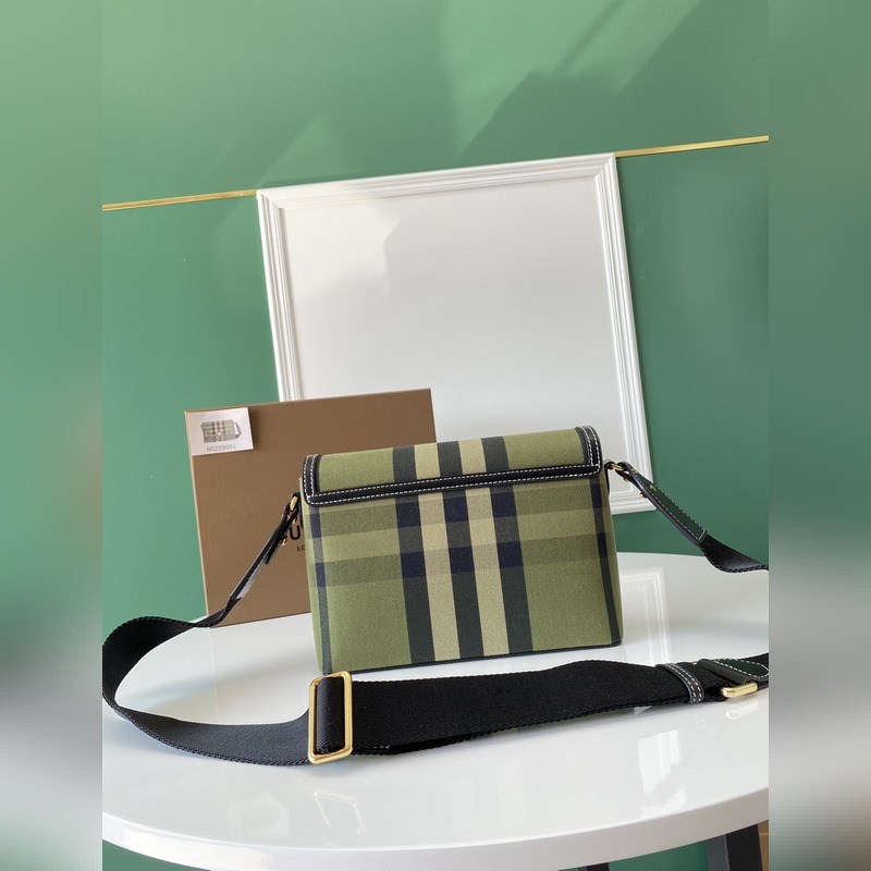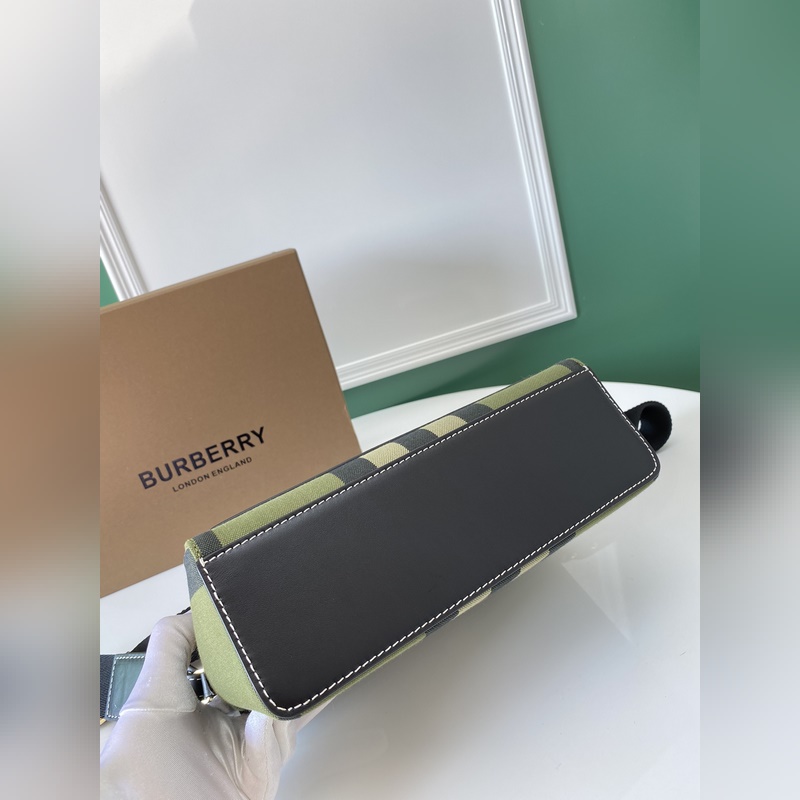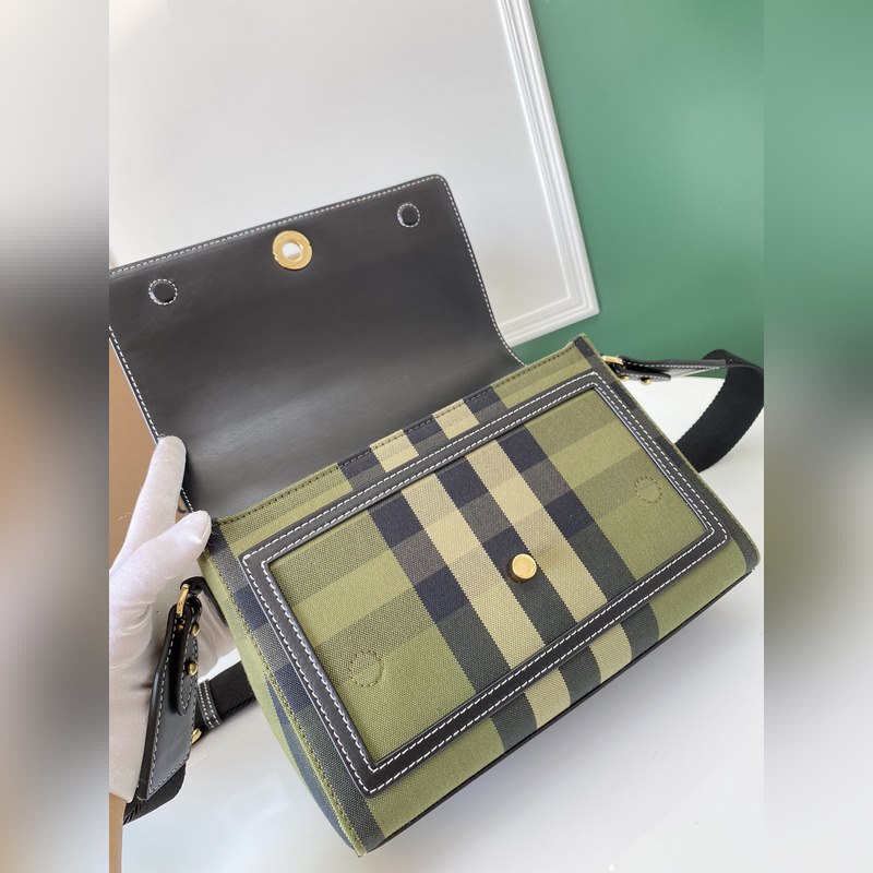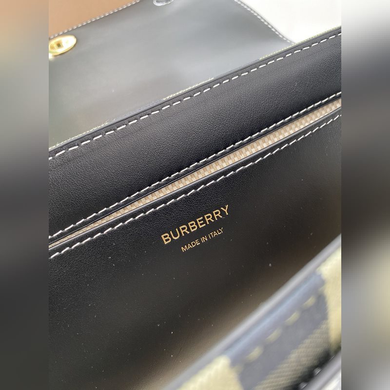 Burberryn uusin hieno crossbody-laukku, joka on valmistettu jacquardista hienokehrätystä ruudullisesta puuvillakankaasta ja ommeltavasta nahkakankaasta