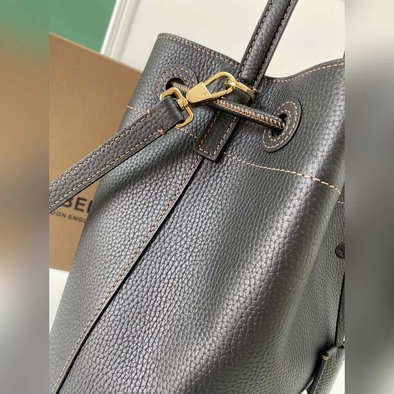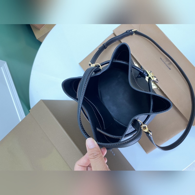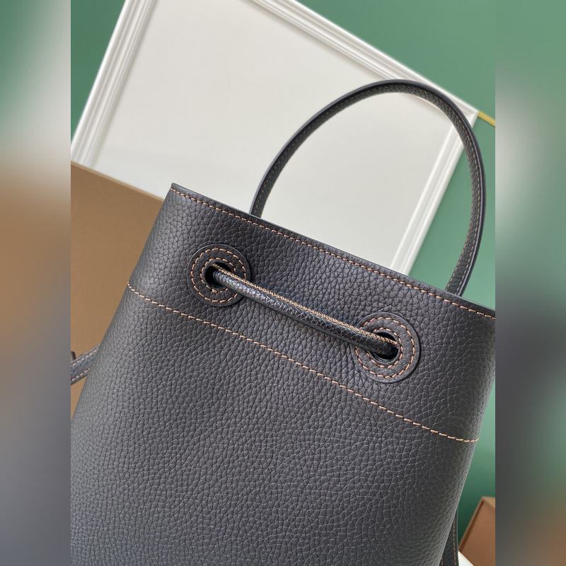 Burberryn uusin versio vasikkanahkaisesta bucket-laukusta on valmistettu italialaisesta parkitusta rakeisesta nahasta