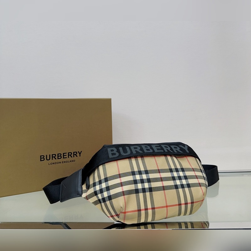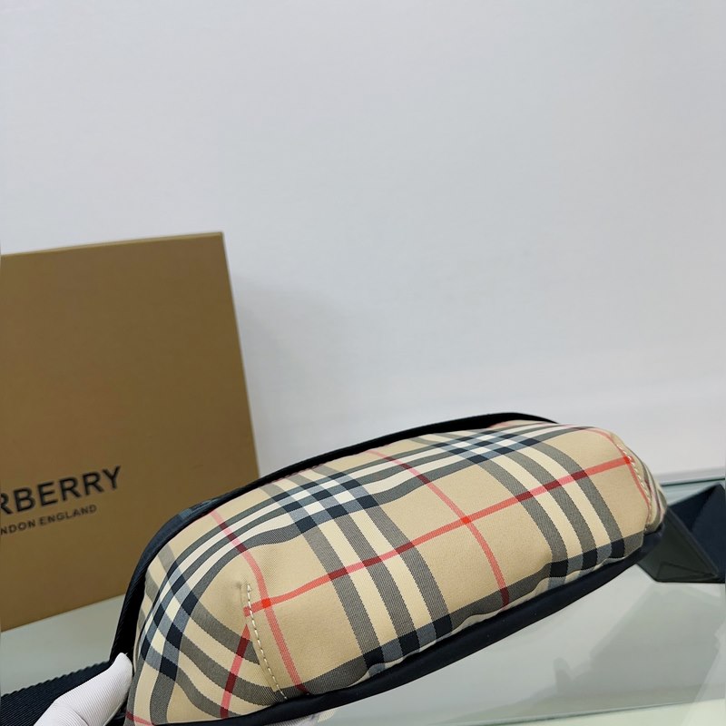 Burberryn vyötärölaukku vetää 1990-luvun katutyyliä. Se on valmistettu nailonista ja koristeltu jacquard-kampalogolla ja hienolla nahkaverhoilulla. Sitä voidaan käyttää ristissä tai sitoa vyötäröltä olkahihnalla. Koko 31.17 5211