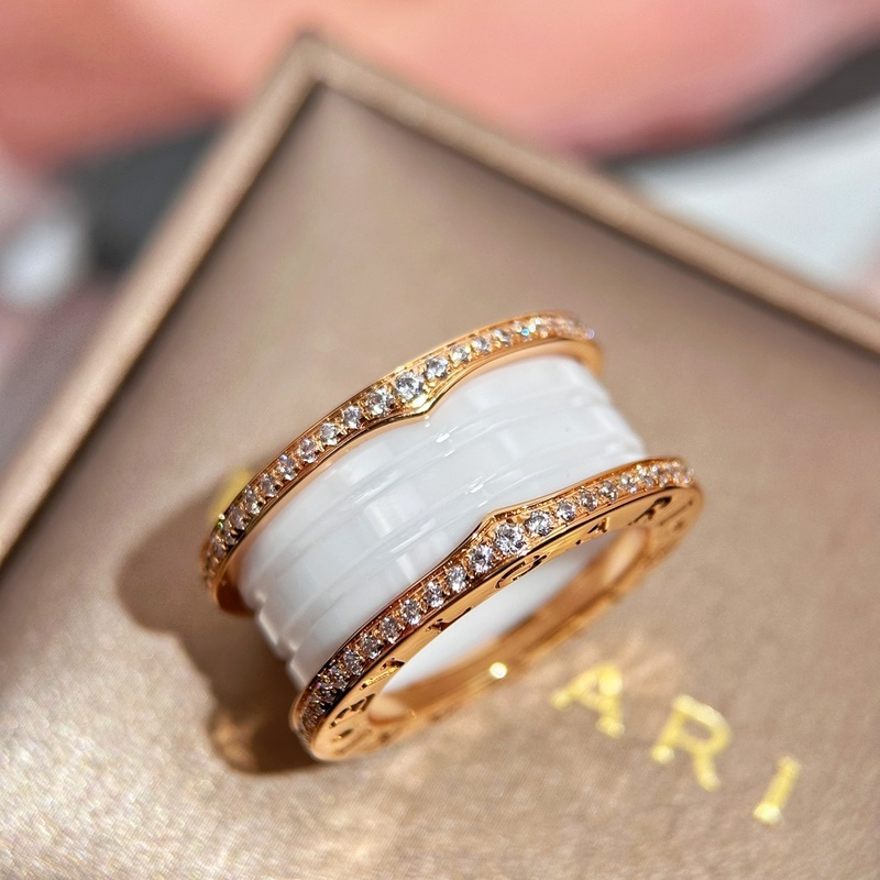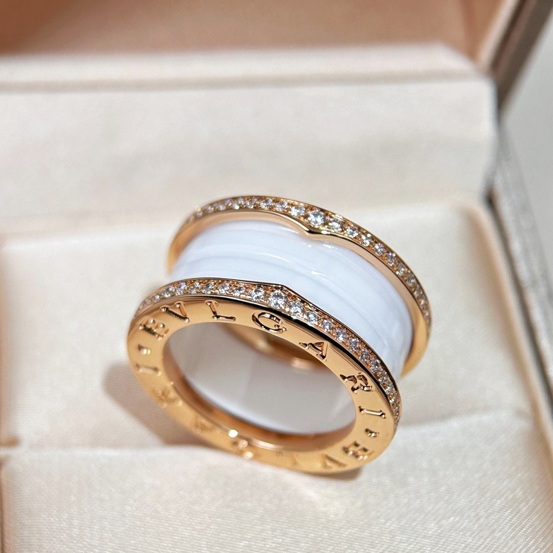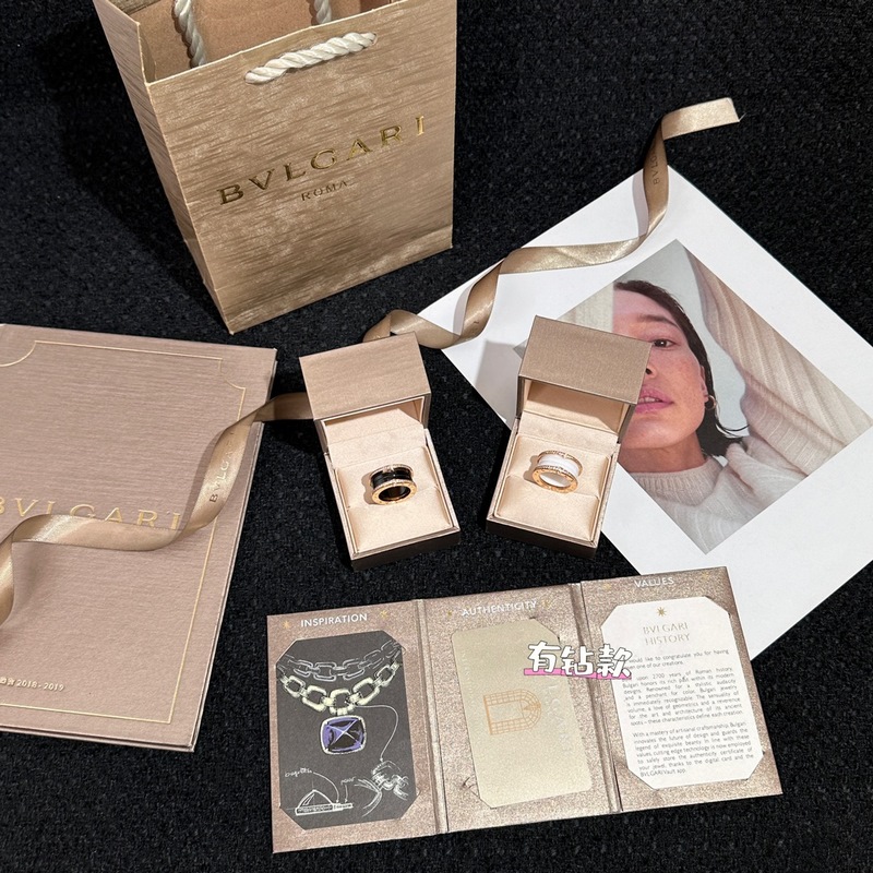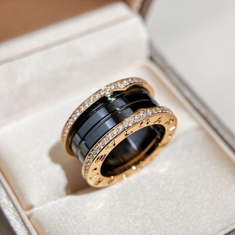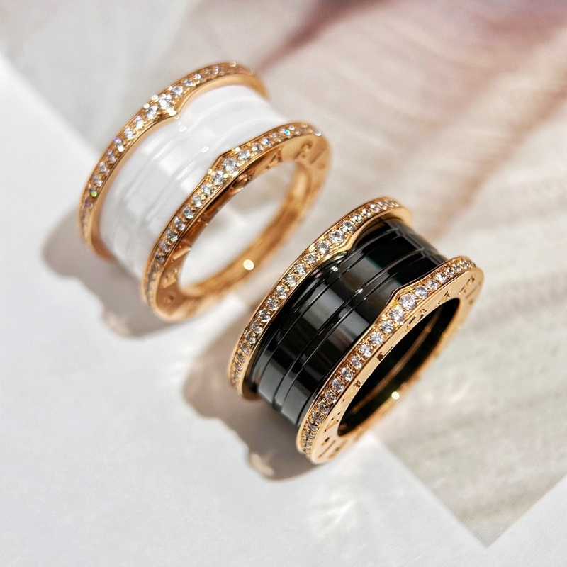 Bvlgari mustavalkoinen keraaminen sormus timantilla