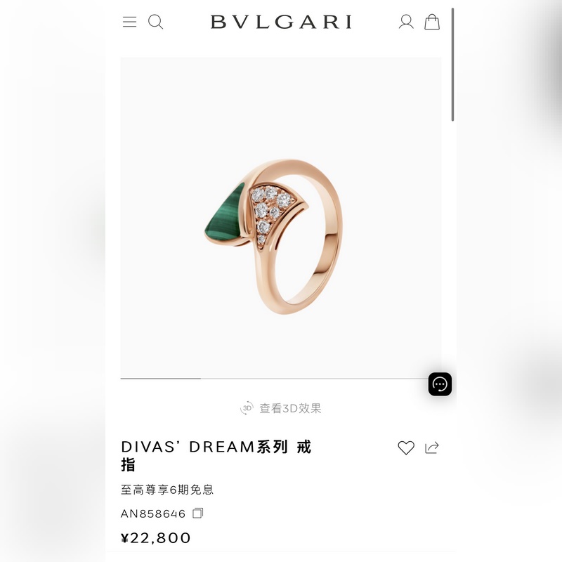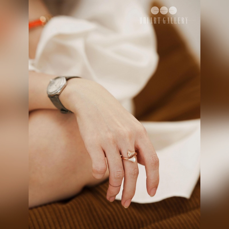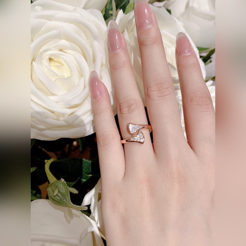 – Vastakuva yllään kuva-BVLGARI DIVAS’ DREAM malakiitti-valkoinen helmiäisviuhkasormus