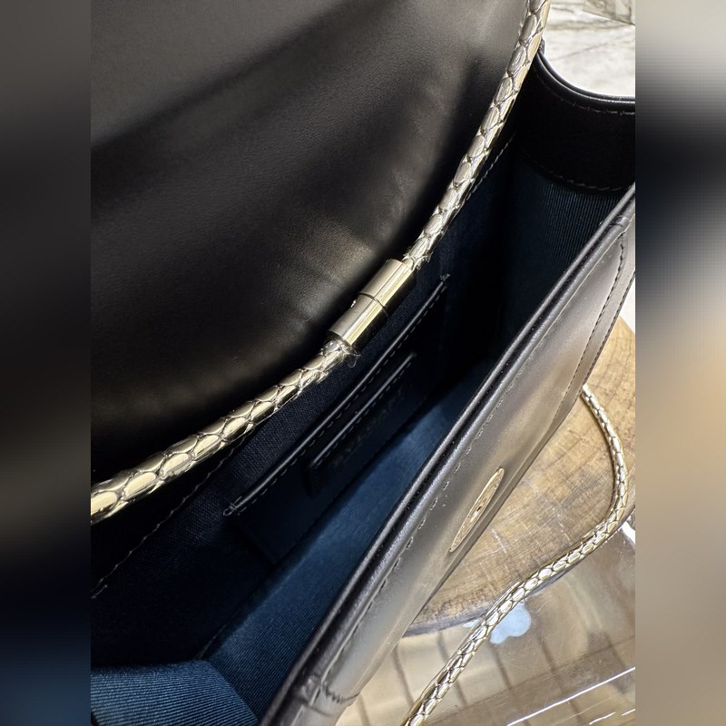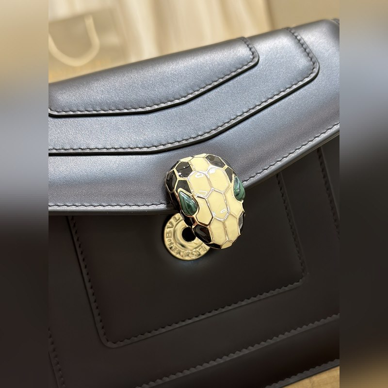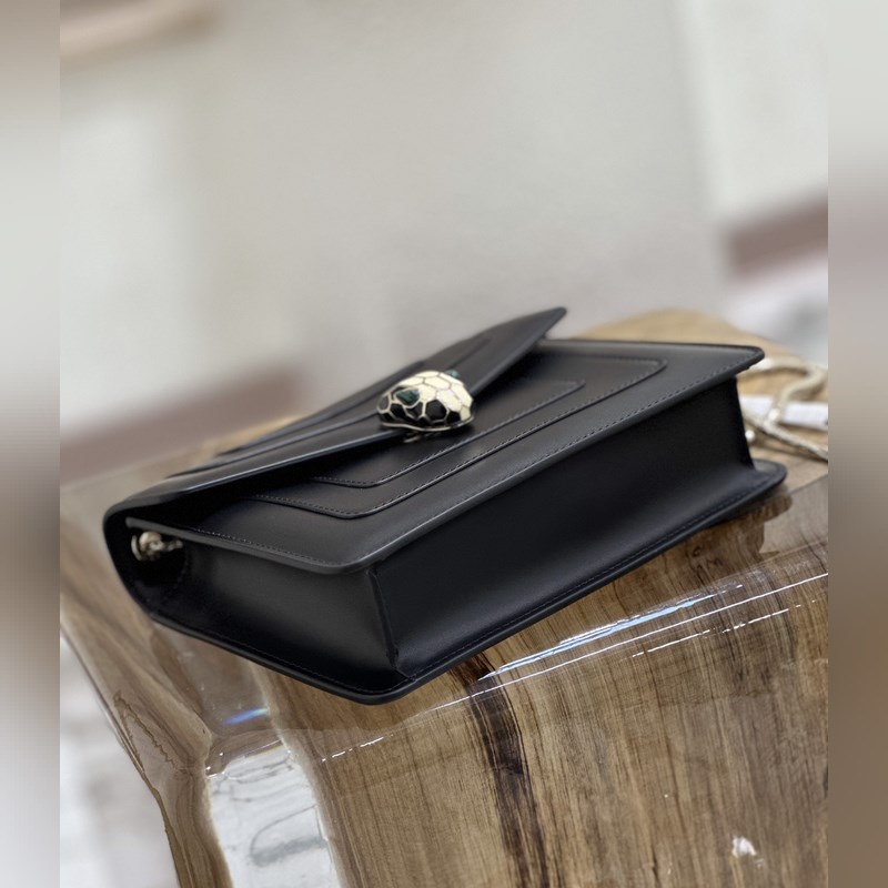 Alkuperäinen nahka, paranneltu laatu. Käärmeen emalimalakiittisilmät. Bvlgari counter classic kuumamyyntisarja, huippuversio, Serpenti Forever “yksikerroksinen” läppäinen pieni neliölaukku, vaaleat kullatut messinkiset tarvikkeet ja mustavalkoinen emaloitu käärmeen pää solki, silmät upotettu vihreillä riikinkukon aidoilla kivisilmillä, täyskuparinen käärmeen runkoketju, kaksi solkilevyä meikkipeilitaskulla, riippumaton peilikooditulostus, “laser antico-counter” -laserco-counter täydellinen pakkaus. Mallinumero: 35107 Koko: 20*15*5cm
