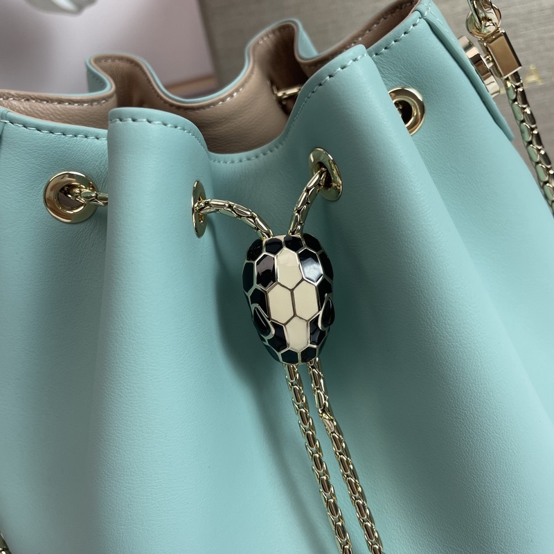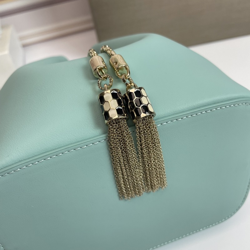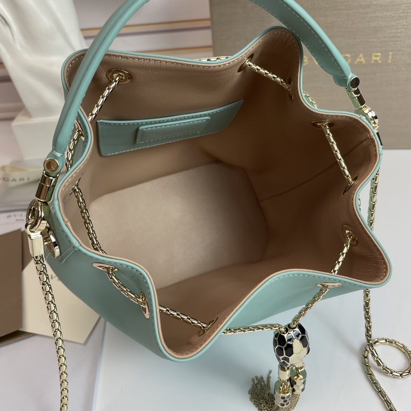 Bvlgarin uusi rajoitetun erän ämpärilaukku, lehmännahkainen malli, B287614, käyttää tuotua käärmeennahkaa ja lampaannahkaa. Tässä mallissa on kupariketju, joka kulkee laitteiston pussin suun läpi. Käärmepään laitteiston pohjassa on lukko, joka voidaan vetää sisään vapaasti. Pakollinen katukuvaus monille eurooppalaisille ja amerikkalaisille suurille brändeille. Koko: 16*20*10,5cm. Kaikki toimitetaan tiskipakkauksen kanssa