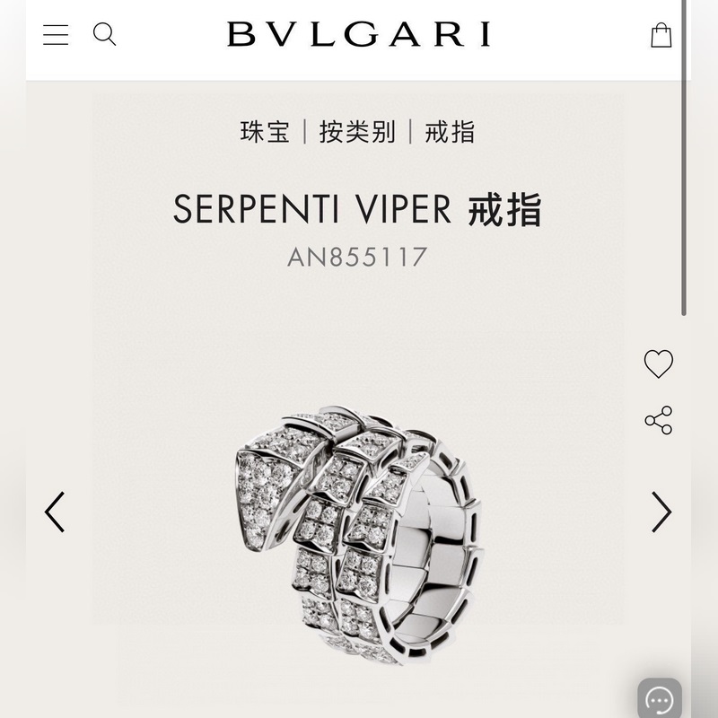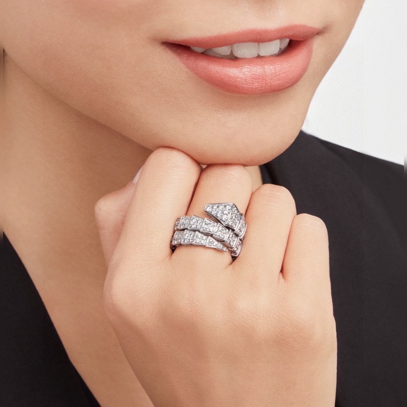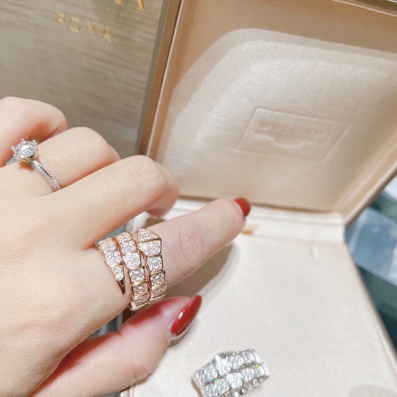 Ostotaso Bvlgari Bulgari SERPENTI sarja käärme täystimantti avoin iso kolmiympyräsormus Markkinoiden korkein versio s925 sterlinghopea materiaali galvanoitu paksulla kullalla Tuotu jousihopea Avaus ei ole nirso käsille Säädettävä Platina ja ruusukulta kaksi väriä valinnainen