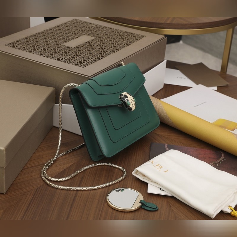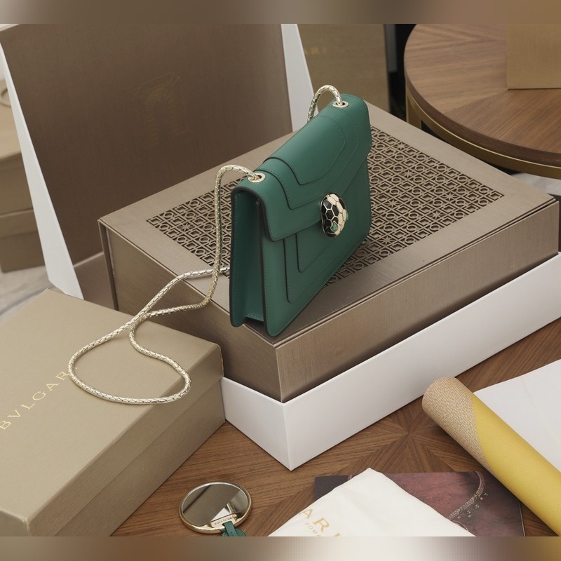 Bulgari Fetal Cow Series Malachite Snake Head Emerald Small Bag Chain Bag No. 351079850