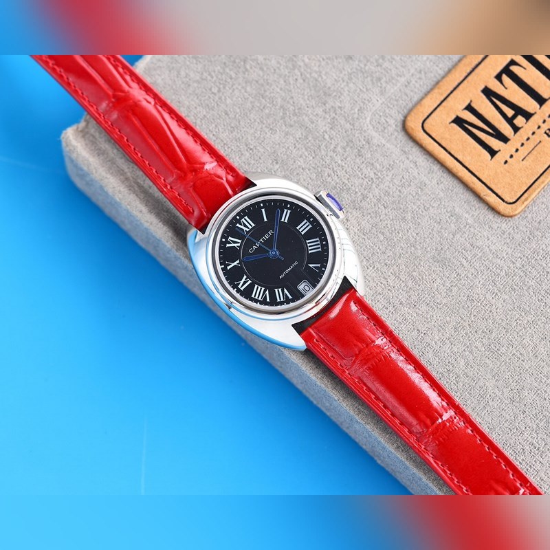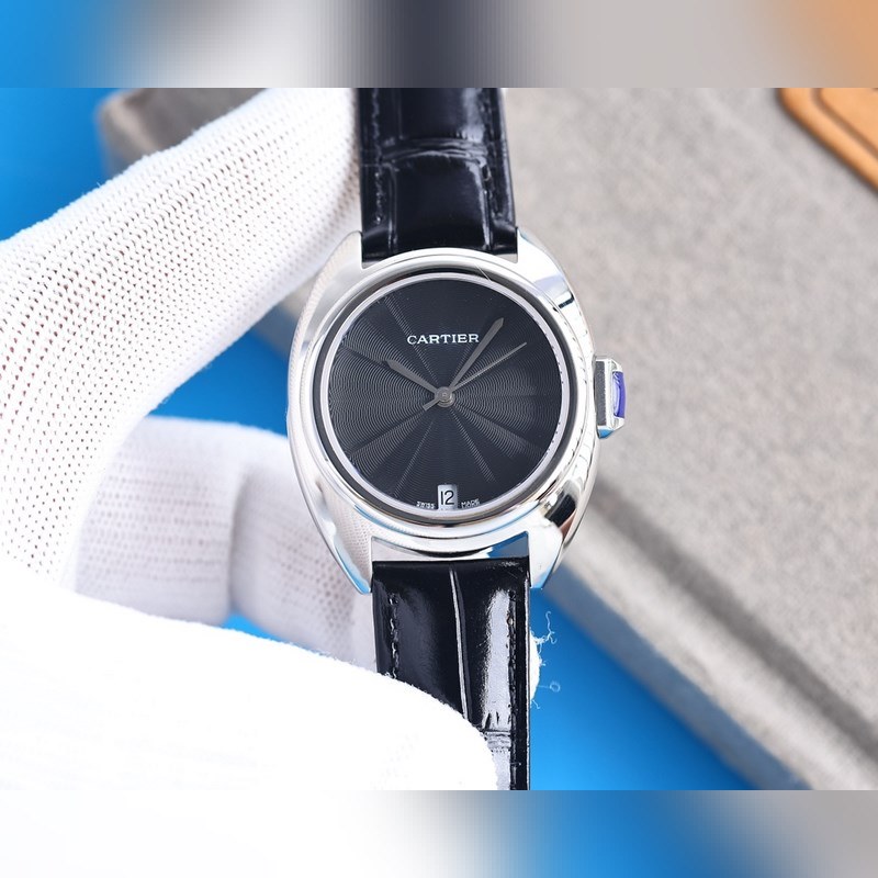 Yksinkertaiset ja sileät viivat rajaavat kellon pyöreän ja täyden kaaren. Cartier on antanut kellolle kauniin ja virheettömän ulkonäön sen hellittämättömällä pyrkimyksellä hienoihin yksityiskohtiin ja upeaan ammattitaitoon. Naisten malli on 31mm. Avainkellossa on säilynyt Cartierin klassinen muotoilu: avaimen muotoisen kruunun yläosaan on upotettu sininen kivi ja kaiverretussa aidossa kellotaulussa on aurinkokuvio. Kun miekan muotoiset rodiumpinnoitetut teräsosoittimet tikittävät mustan kellotaulun poikki, naisten sisäinen vahvuus on vieläkin kauniimpaa ja arvokkaampaa. Kellossa on italialainen vasikkanahkainen ranneke, safiirilasi, automaattinen mekaaninen liike 2824, alkuperäinen Cartier taittuva solje ja täysteräskotelo. Klassinen muotoilu on hyvin tunnistettavissa. Ulkonäöltään se ei ole jalo perheessä, mutta sen on oltava perheen ylpeys, hillitty ja ylellinen.