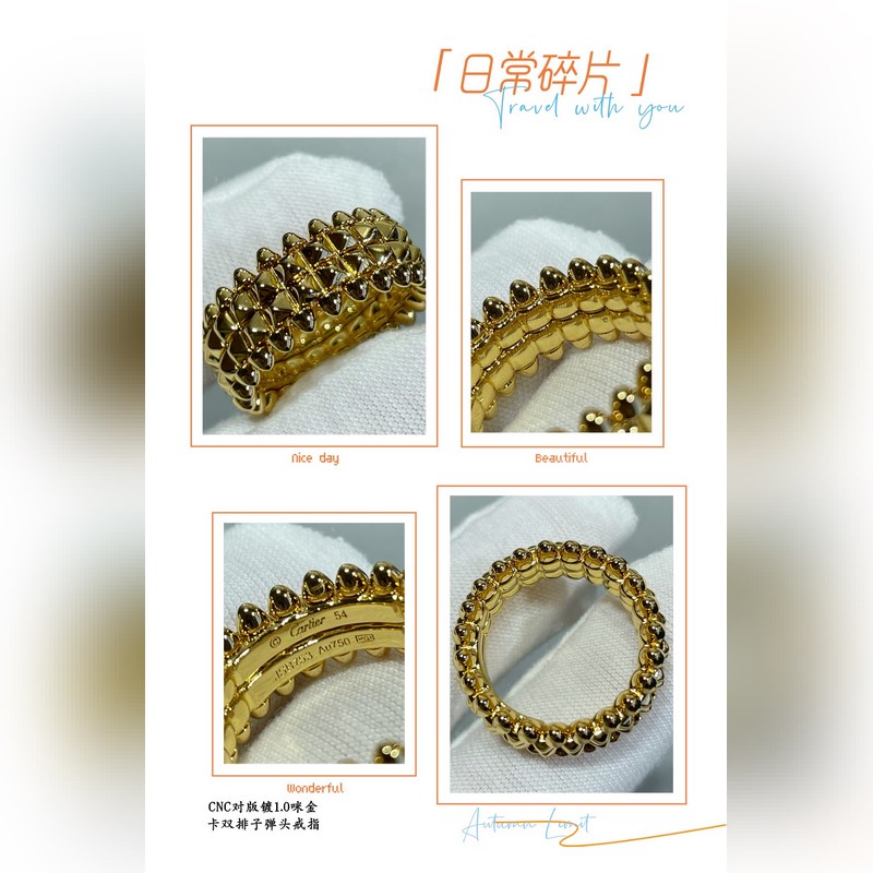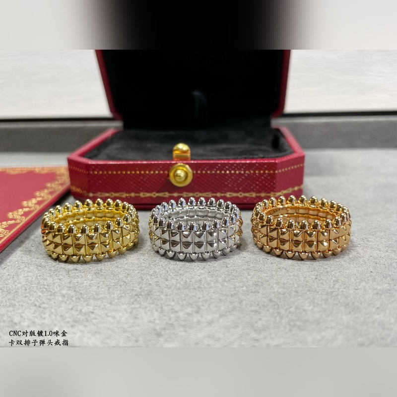 V-kullattu 1,0 mm kullalla 51402 Koko 678 Vastaava Cartier CNC kaksirivinen luotirengas Suosituin rengas Pienet niitit molemmilla puolilla voivat heilua vapaasti, erittäin ainutlaatuinen. Ajaton klassikko Erittäin suosittu viime vuosina Huippuluokan Sama ammattitaito Eri hinta Aito kultarakenne