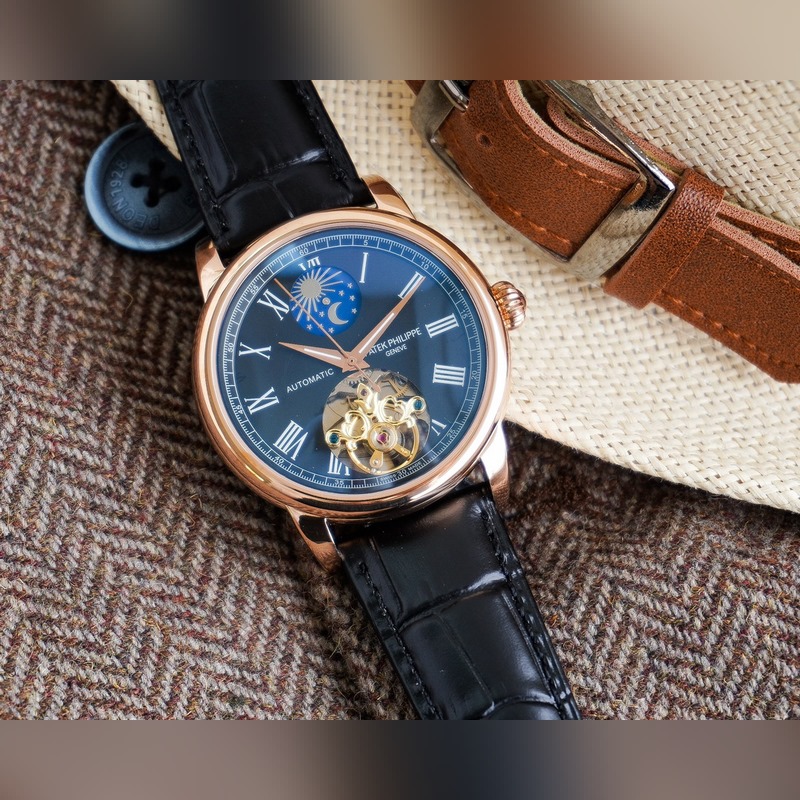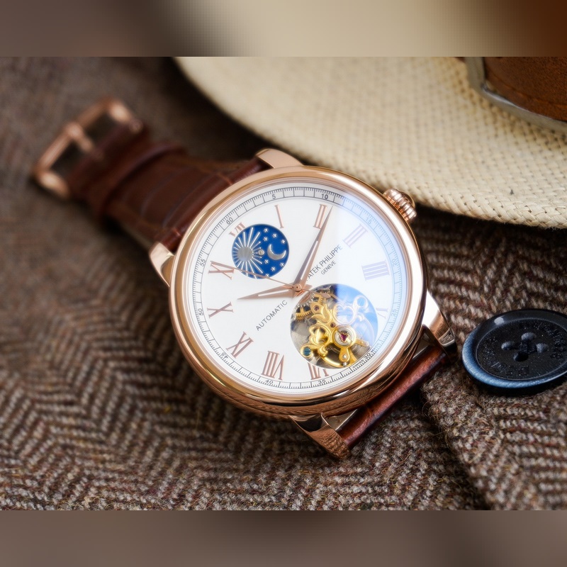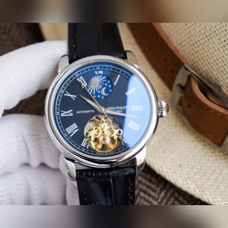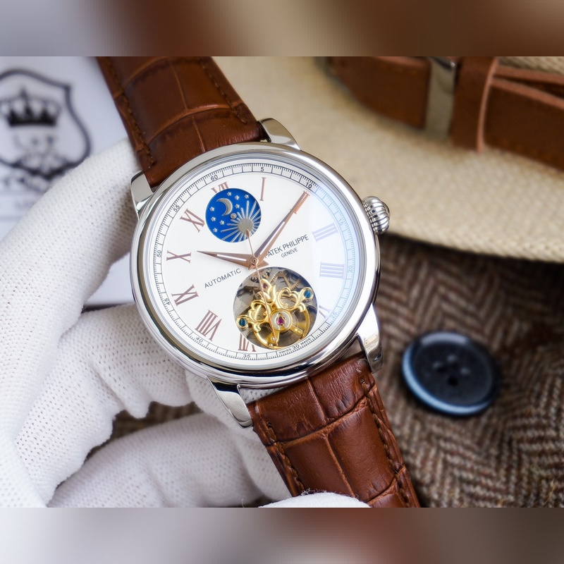Cartier luksusmiesten kello, iso vauhtipyörä kuuvaihesuunnittelulla, hienoa ammattitaitoa, omaperäisyyttä, jaloa ja herrasmiesmäistä. Se ottaa käyttöön täysin automaattisen mekaanisen liikkeen, top 316 ruostumattomasta teräksestä valmistettu kotelo ja hihna, mineraalinen superpeili, koko 42 * 13