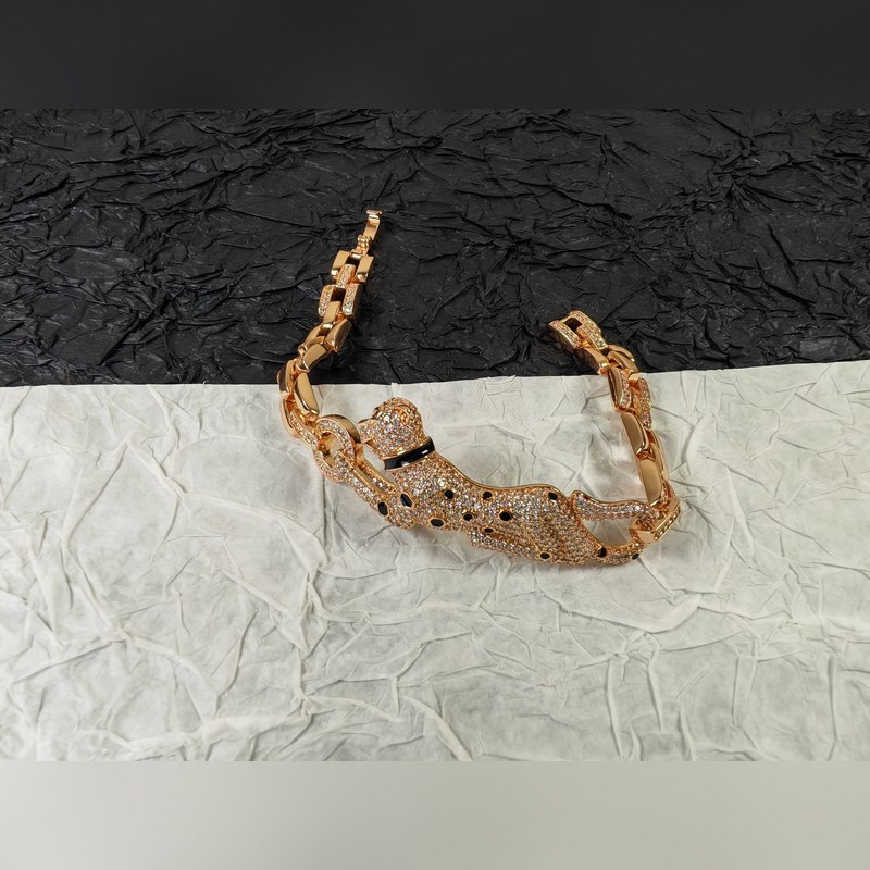 Cartier 1:1 leopardi täystimanttinen rannekoru Klassinen aristokraattinen tyyli, ylellinen täystimanttinen viehättävä leopardimuotoilu Raskasta käsityötä Täydellinen kopio Galvanoitu kulta ja smaragdileopardisilmät Tee leopardista houkuttelevamman näköinen Hallitseva täystimanttileopardi