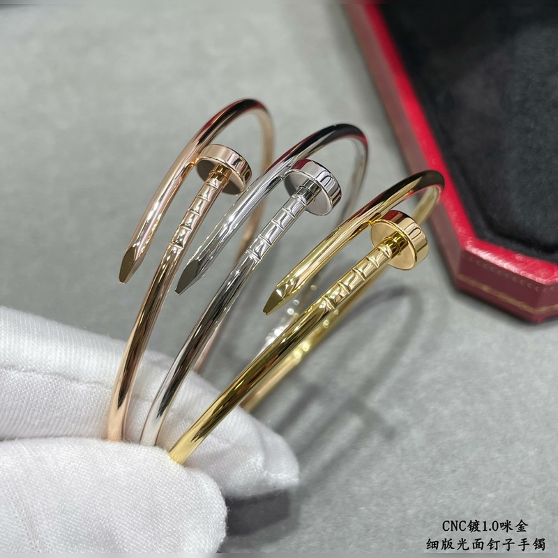 V kullattu kullalla 3460270 Koodi: 16.17. CNC-yhteensopiva Cartier ohut versio sileästä ontosta putkesta kynsirannekorusta, kolme väriä