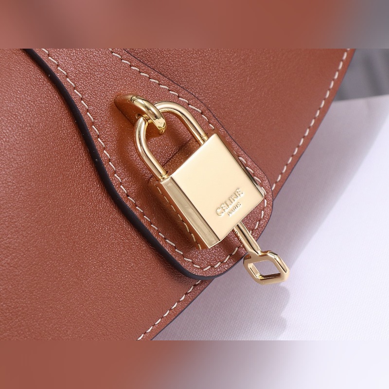 Tämä pieni riippulukolla varustettu laukku on upouusi Celinen laukkutyyppi. Se on pieni ja erittäin herkkä, retrotunnelma ja hieman yliopistotunnelmaa. Se on uuden Celinen kuumin tyyli viime vuosina.