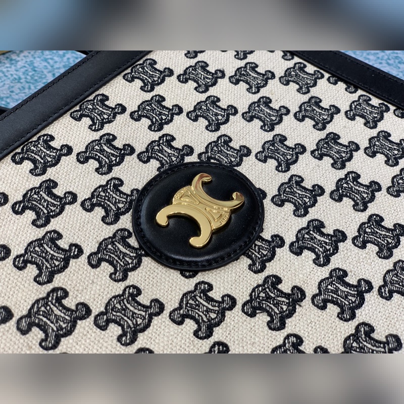 CELINE Brodeerattu musta kirjailtu kangas pystykäsilaukku Musta
