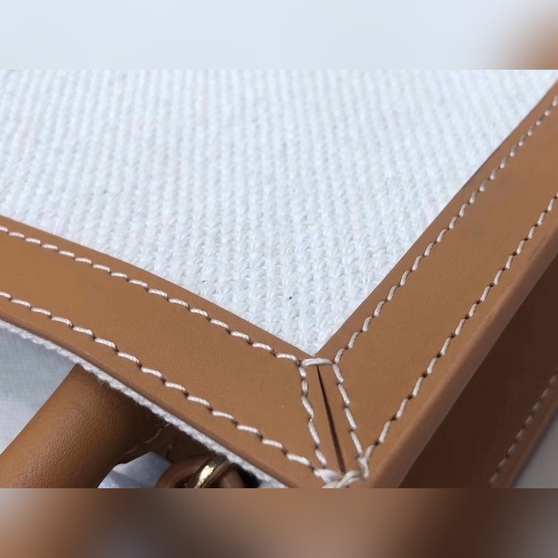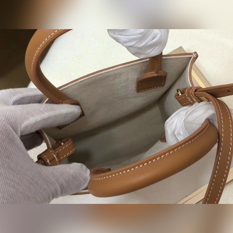 Vi introducerar en ny ministorlek, väskan är gjord av canvas och kalvskinn med en justerbar och avtagbar axelrem i läder, som är mycket mångsidig. Den kan hålla mobiltelefoner, plånböcker och andra personliga föremål samtidigt som den har ett lätt och stilrent utseende.