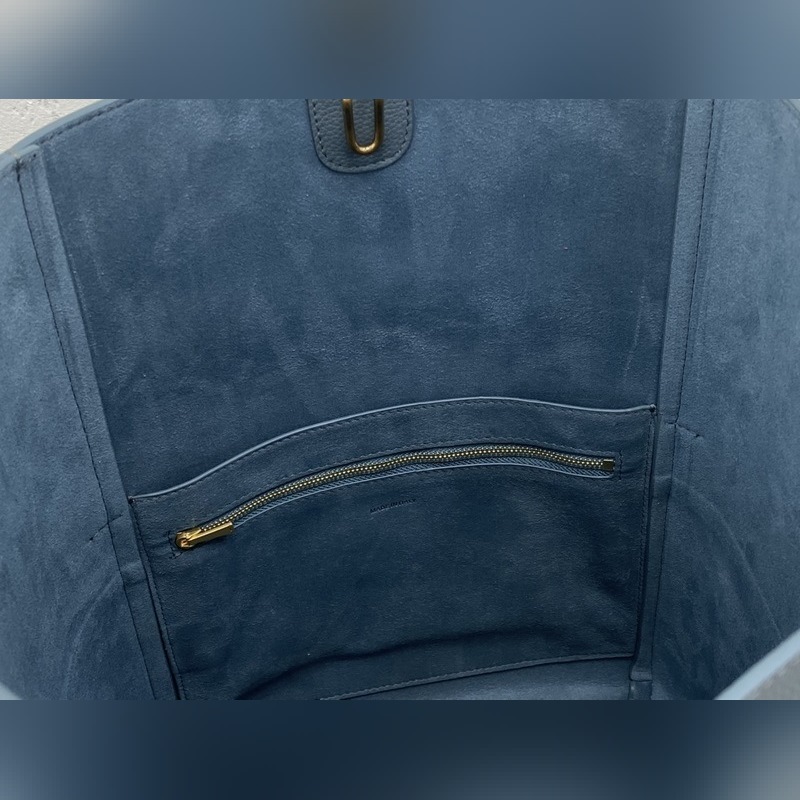 Avtagbar axelrem av ull Inre hakstängning4 yttre platta fickor Invändiga platta fickor och blixtlåsfickor Guldfärgad hårdvara 100 % kalvskinn 100 % mockafoder