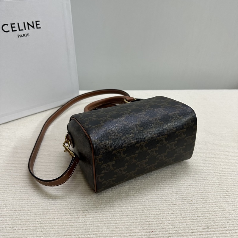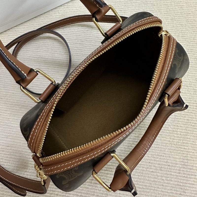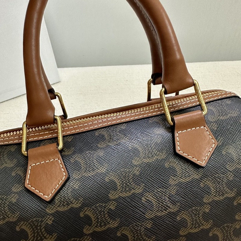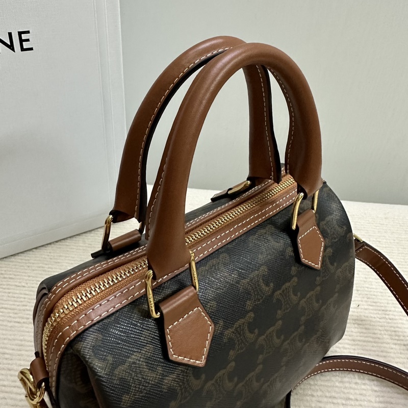 CELINE pieni logopainatus lehmännahkainen Boston laukku TRIOMPHE CANVAS logoprintti, pieni koko, ei liian iso eikä liian pieni, juuri sopiva ylävartalolle, pitkät ja lyhyet ihmiset selviävät ~ Nahkainen nahkareunus, kangasvuori, vetoketju, 1 päälokero, sisäinen vetoketju mallin pituus8 cm 113772 Floral Brown