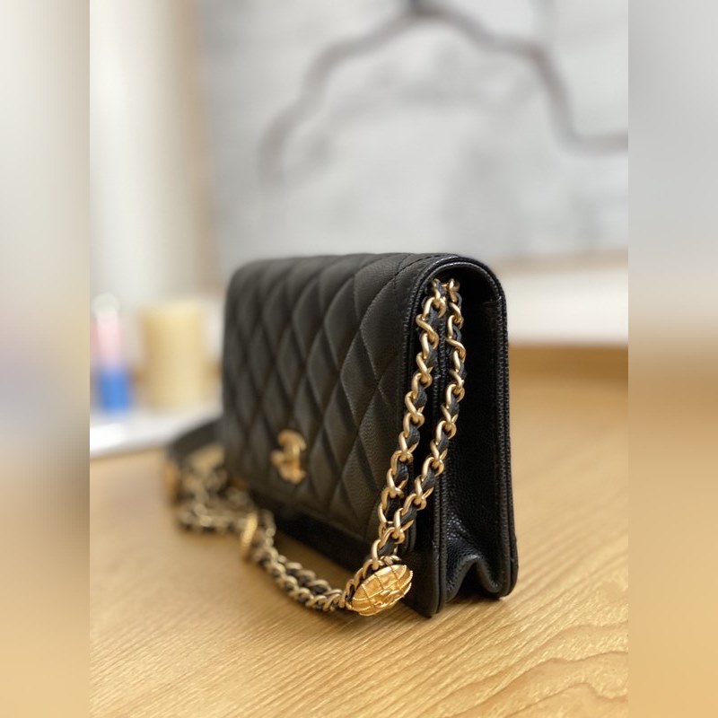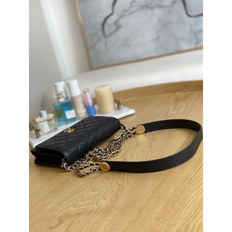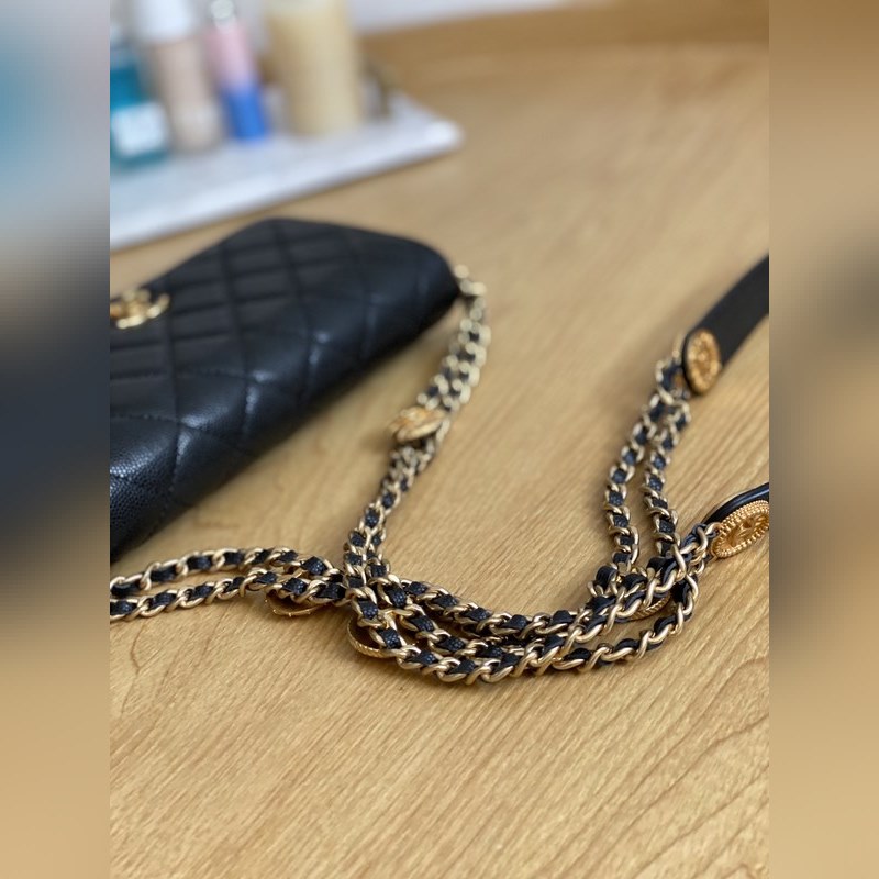 Kombinationen av Chanel lyckliga guldmynt och kedjor gör matchningen mer färgstark, även tillbehör kan sparas, överraskningar och evig elegans.