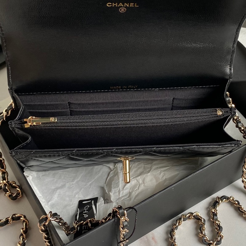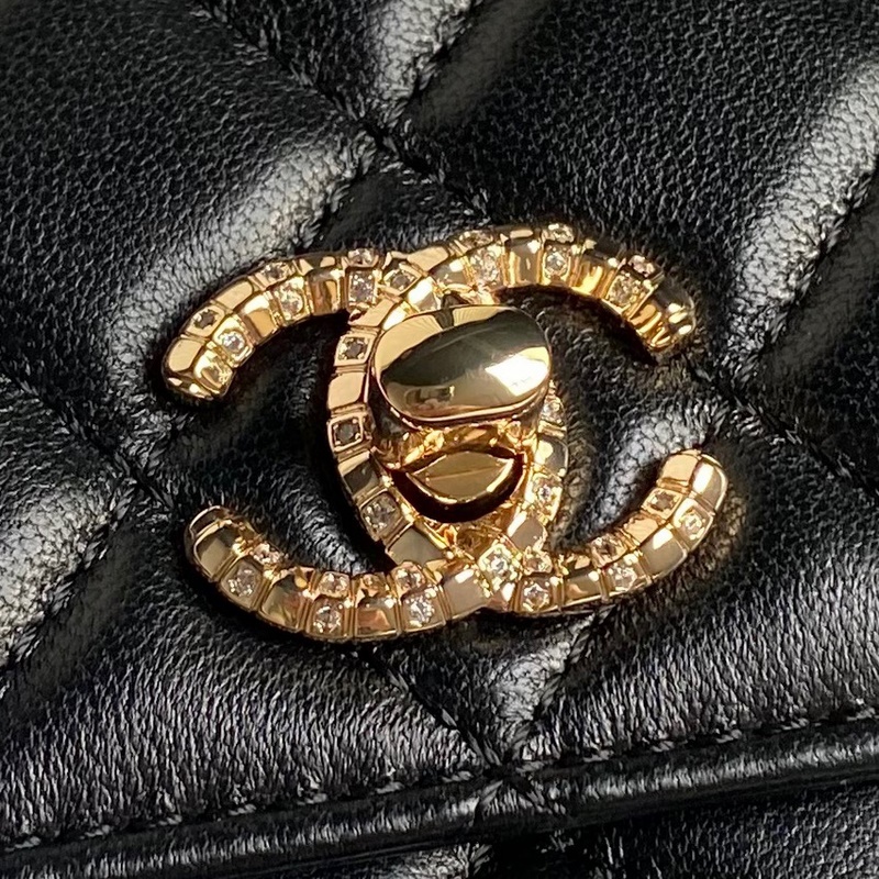 Täynnä yksityiskohtia ja hienoutta. Klassisessa mustassa timanttikuviossa ketjulla on tyylikäs ja huippuluokan luonne~ Haitarilaukkussa on mukava tilavuus