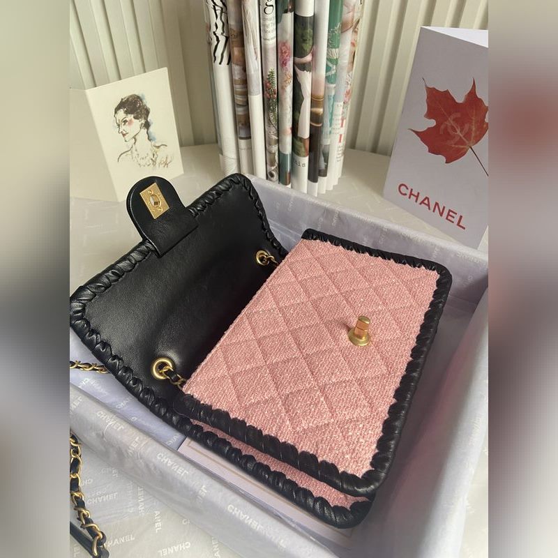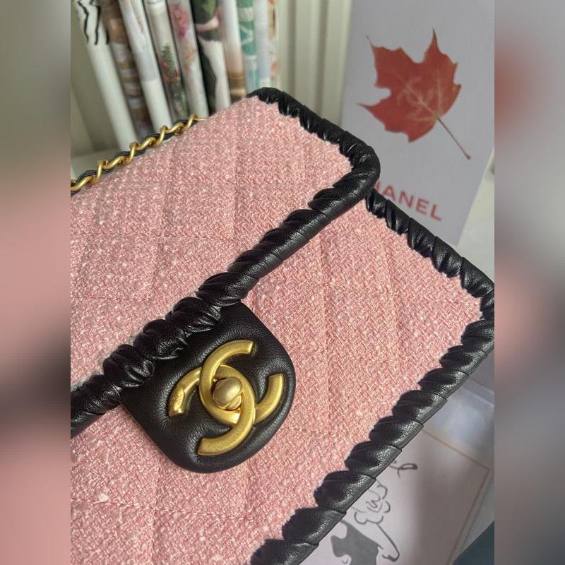 Chane1s nya tofupåse med flätad fårskinnskant är riktigt high-end och lätt, full av femininitet. Dessutom finns det en liten detalj på kedjan med ett litet märke som hänger på.
