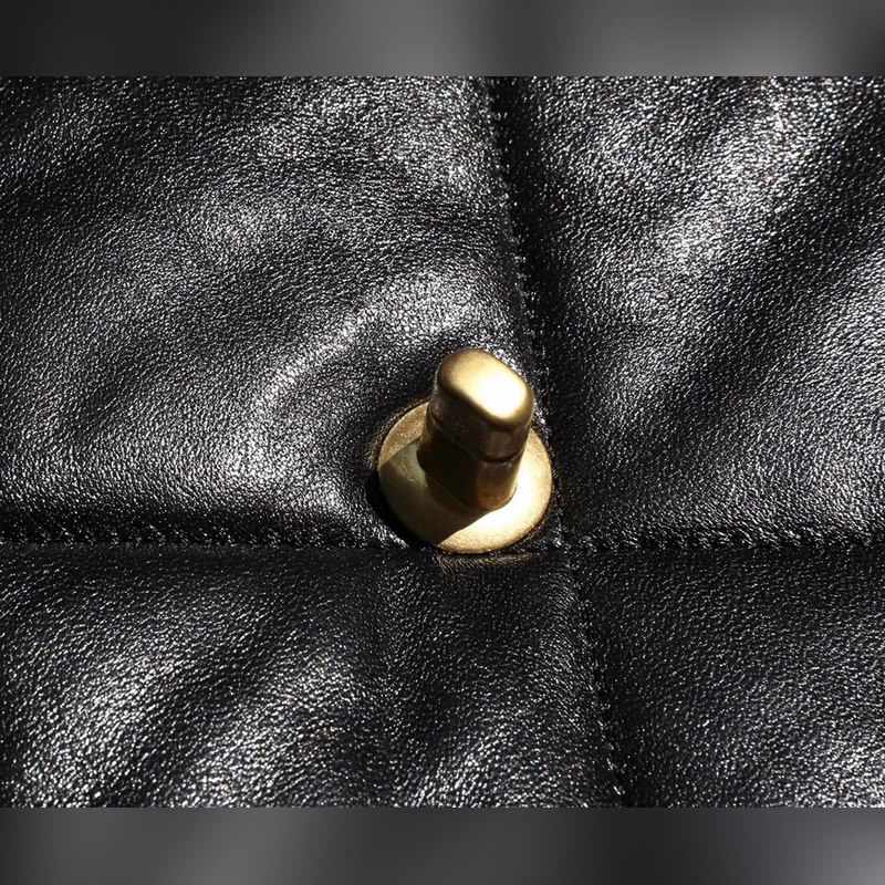Läpinäkyvä kirkas tekstuurinen vuohennahka yhdistettynä suuriin timanttimuotoiluelementteihin