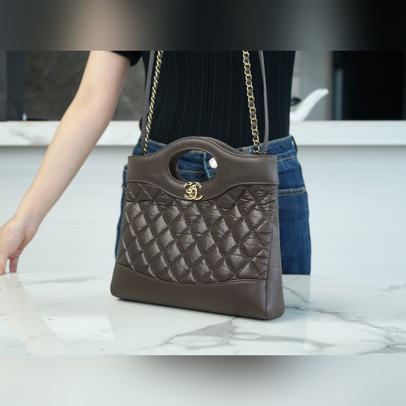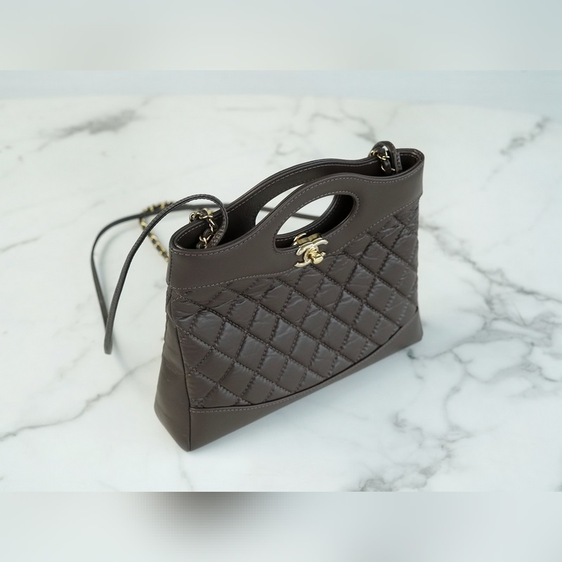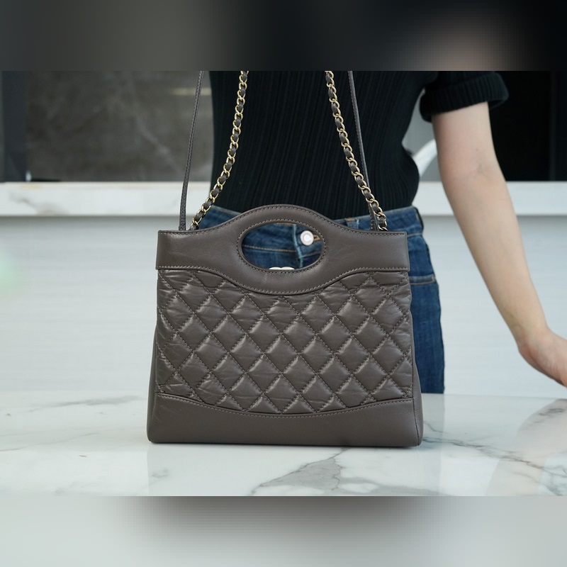 31 käsilaukku on muodikas ja monipuolinen, valmistettu kirkkaanvärisestä ryppyisestä vasikannahasta. Nahan pinnan ryppyinen rakenne on CHANELin ainutlaatuinen retrotyylimerkki. Herkämpi ja kompaktimpi minikoko on ihanampi ja käyttäytyvämpi kuin suurikokoinen
