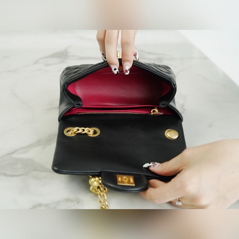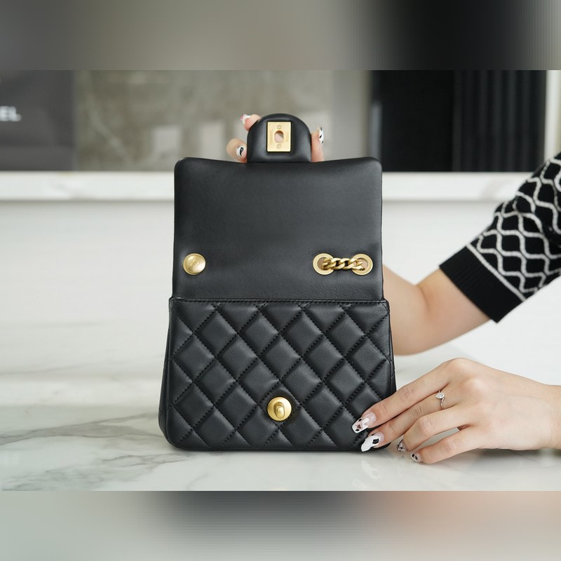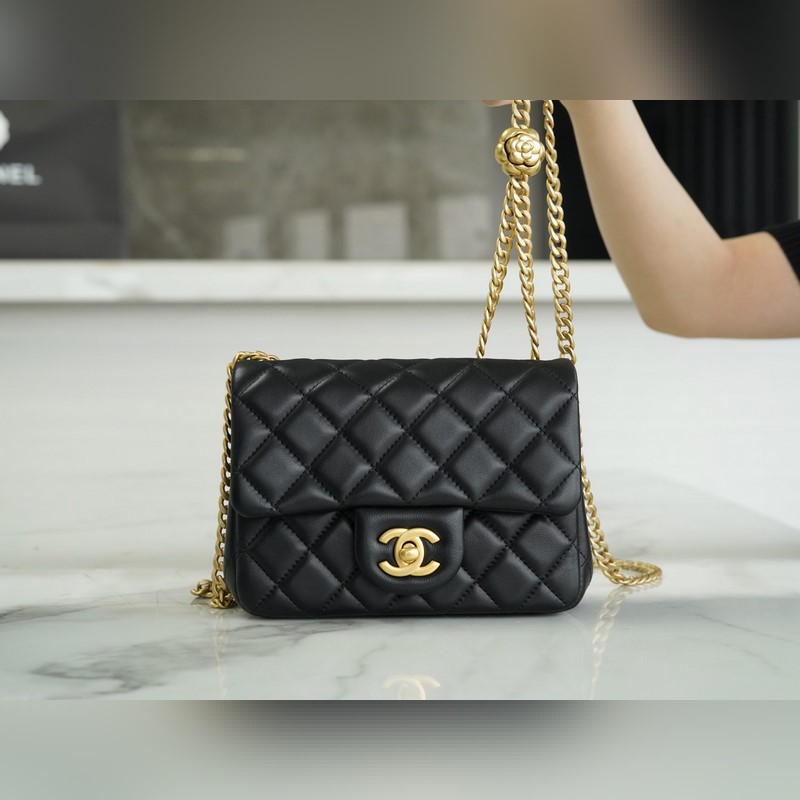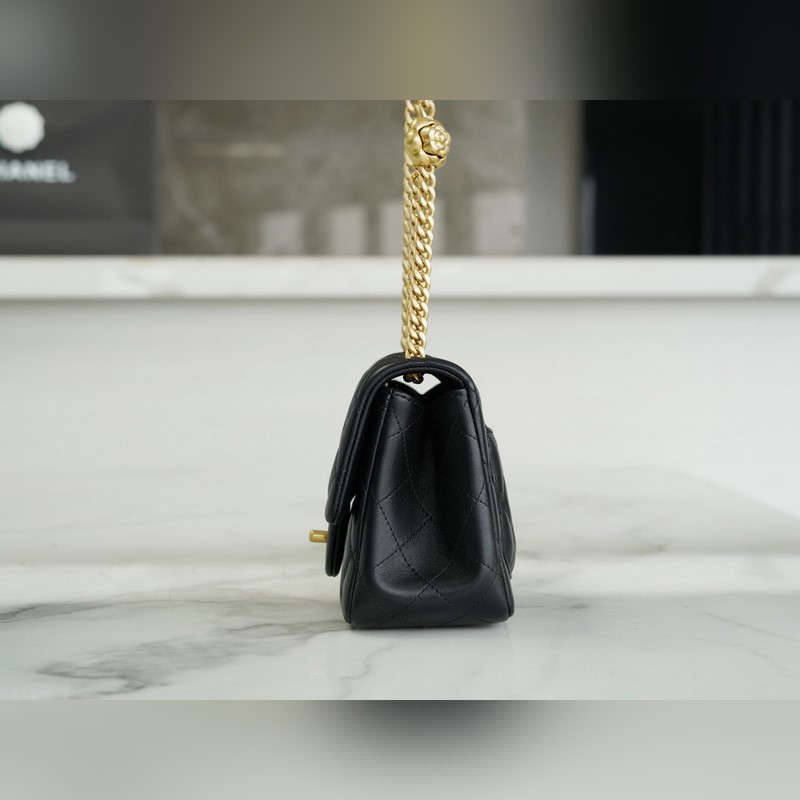 CHANEL 23S Camellia Säädettävä solki Neliö Fat Man Aito Nahka