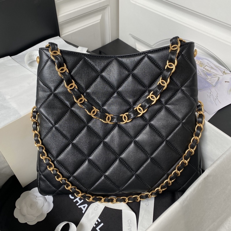 Chanel 24 Hobo Bag Hippie Bag Malli AS4754 Tämä on sama kuin edellinen Hobo kainaloketju. Se on erittäin kevyt ja siinä on suuri kapasiteetti. Molemmat ketjut voidaan taittaa ylös. Se on hyvin rento ja muodikas. Koko on myös erittäin käytännöllinen. Mitat 28×30×7 cm