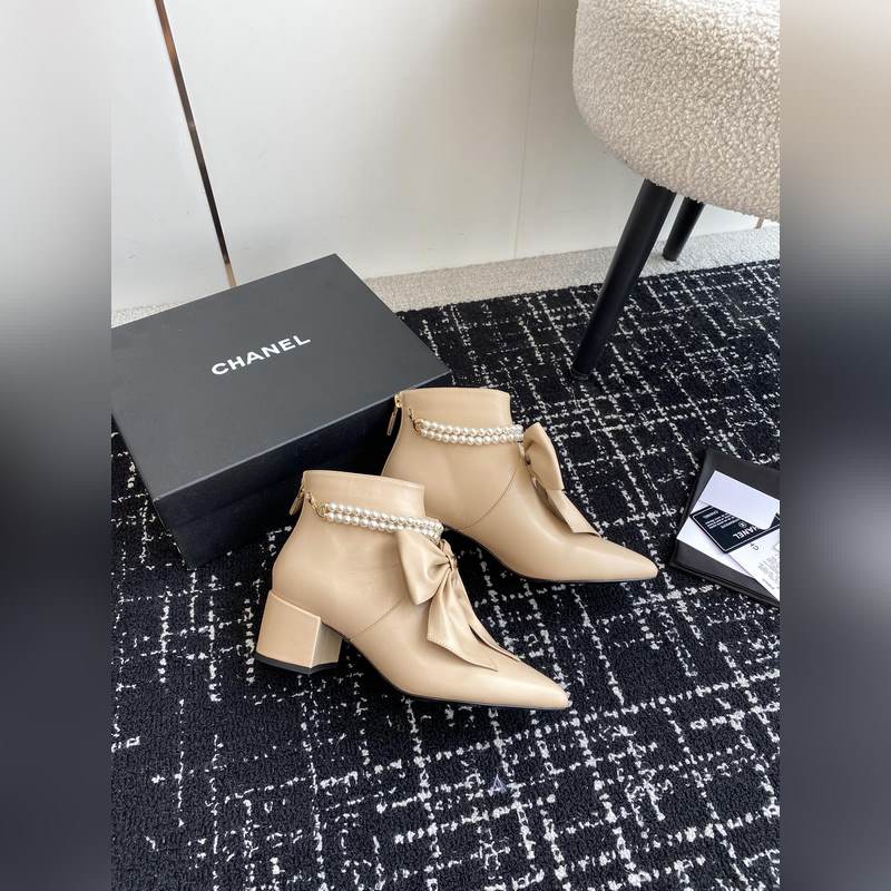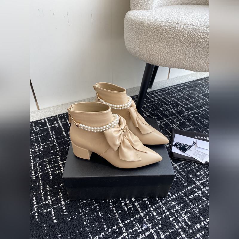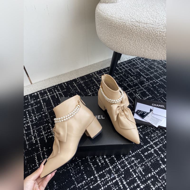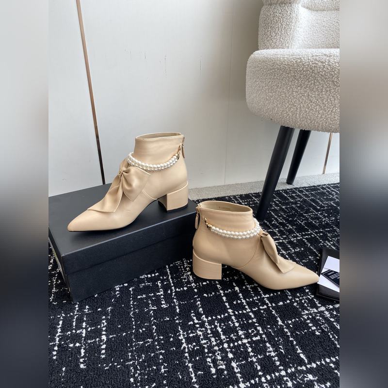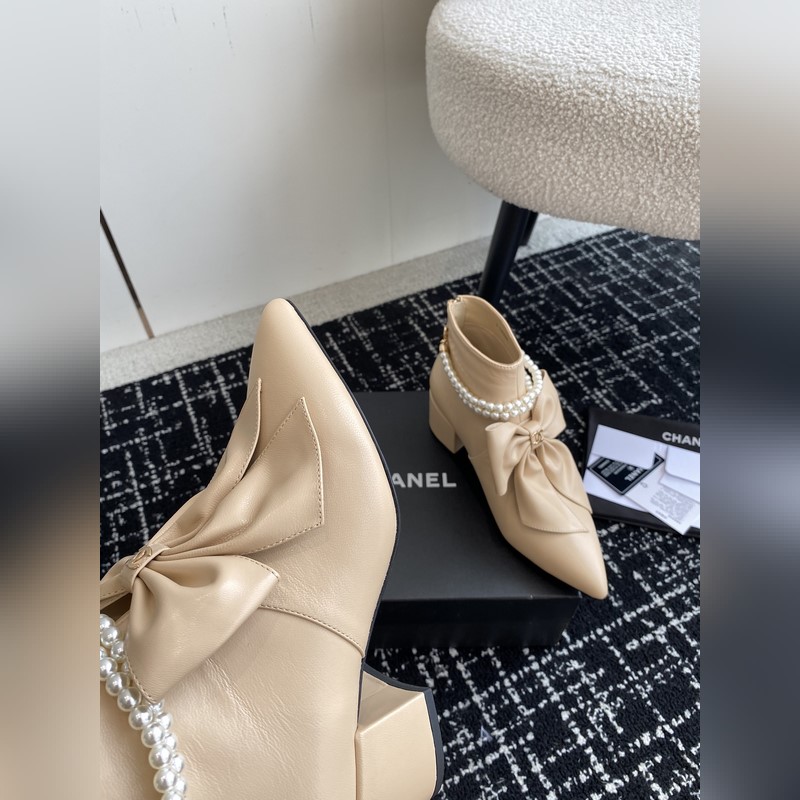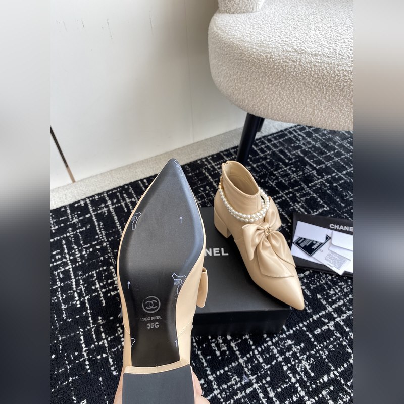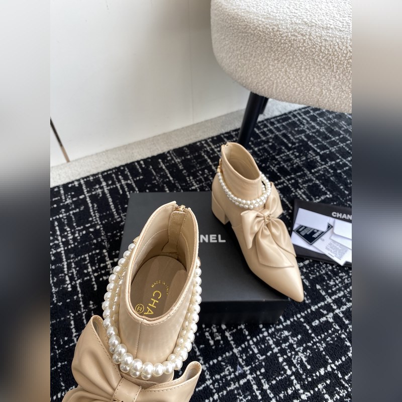 Chanel 24 uudet teräväkärkiset paksukantaiset rusettihelmikengät