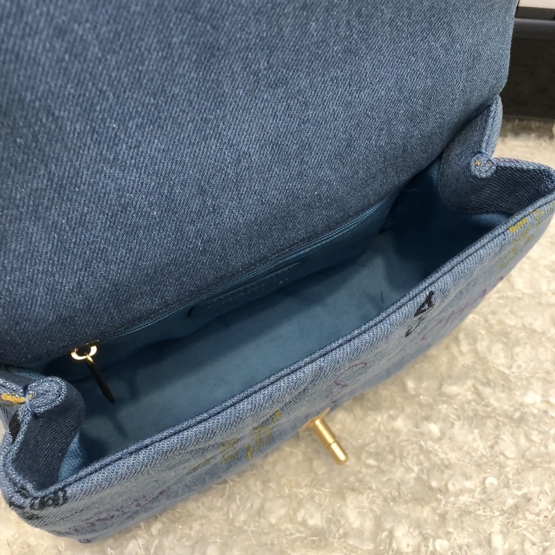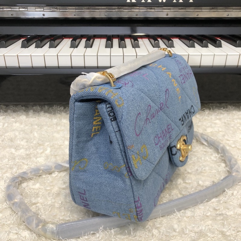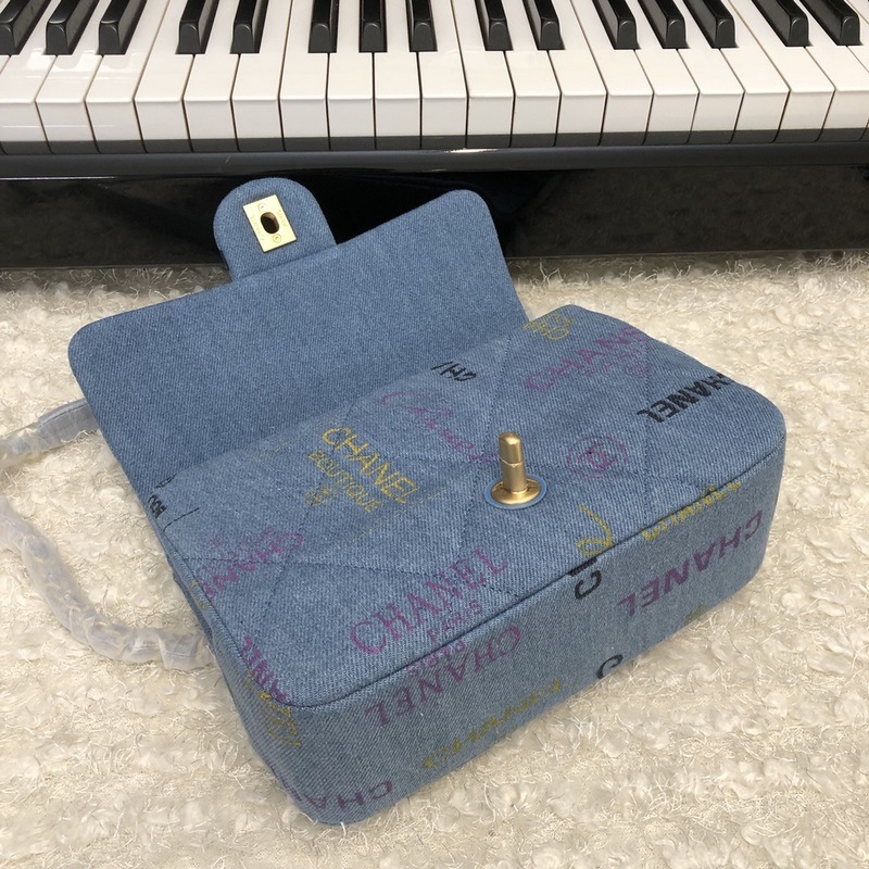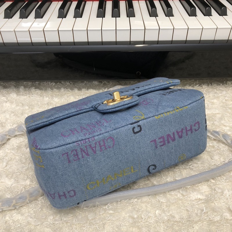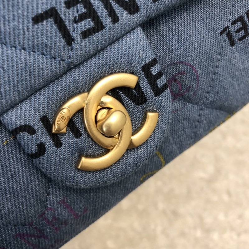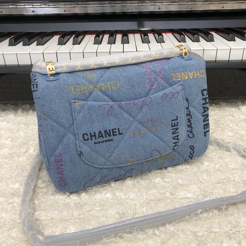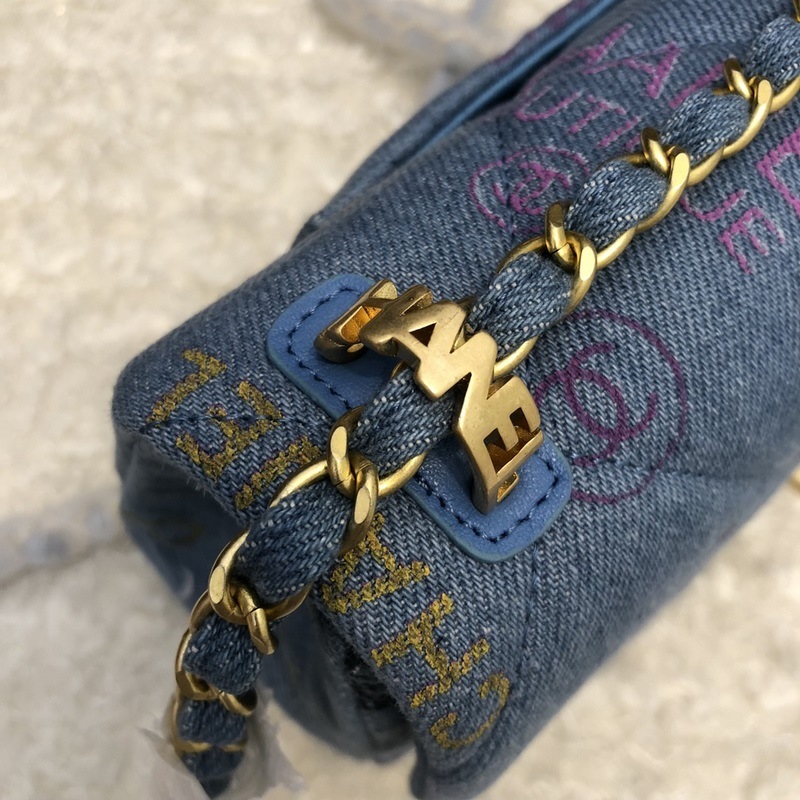 Chanel nya jeansserie cf blå kedjeväska i tyg liten modell 3134