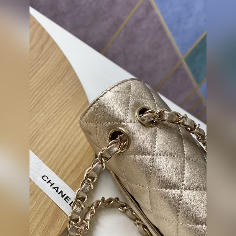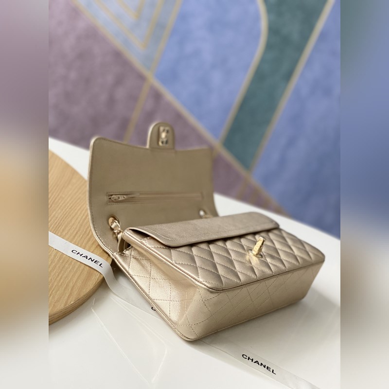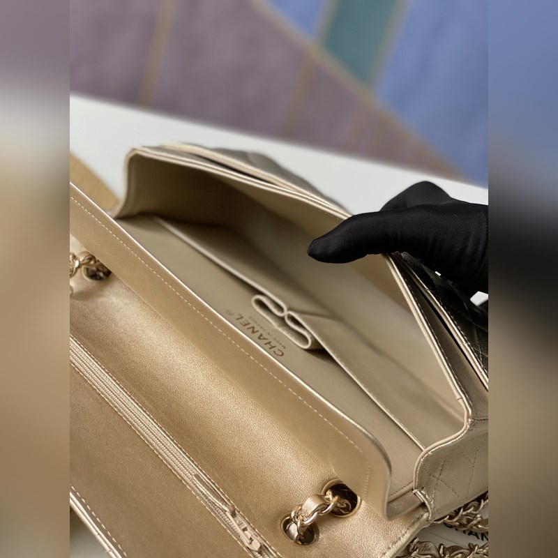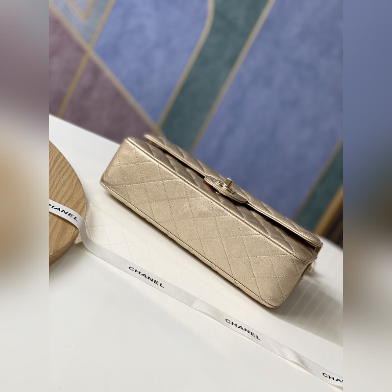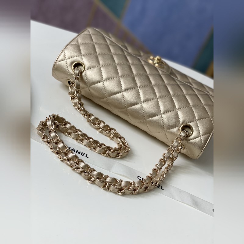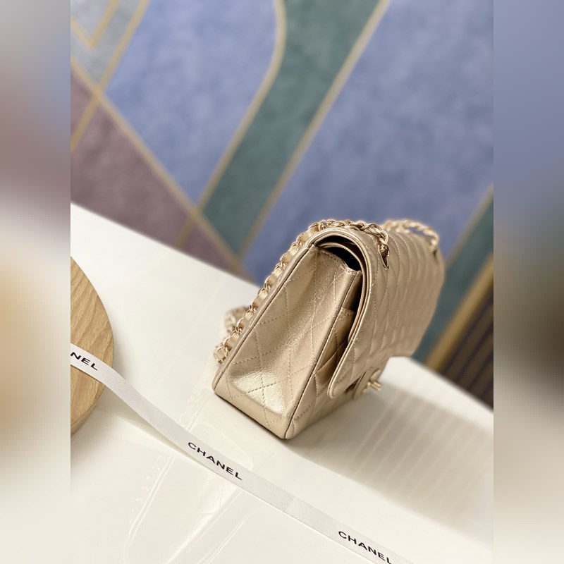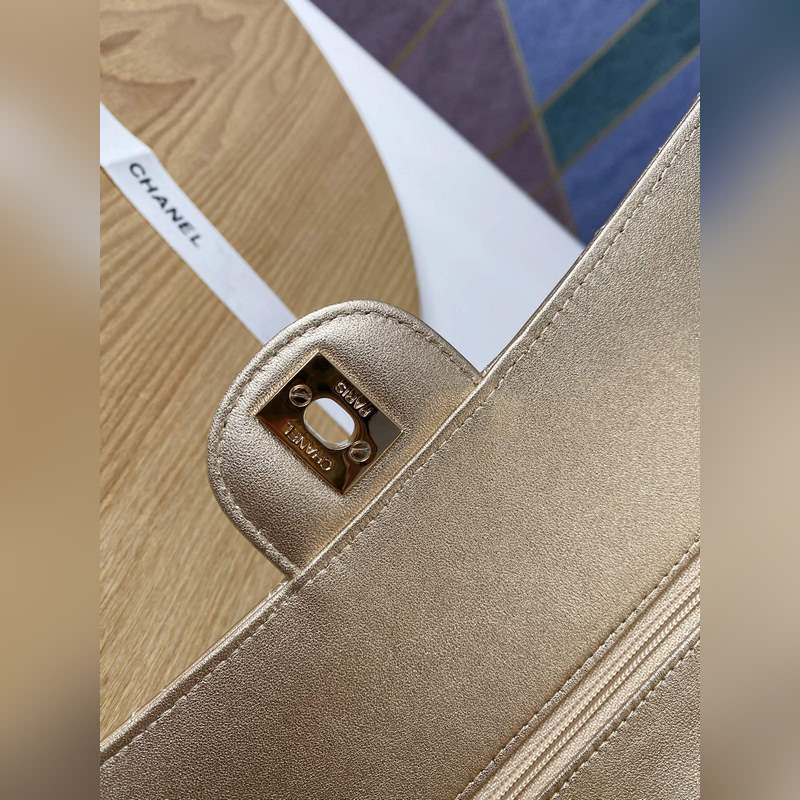 Kultainen ja kimalteleva, kaunis klassinen ulkonäkö. Samppanjakulta, huippuluokkaa, eri värejä eri valossa, kaunista joka kulmasta. Käytetään erityistä käsityötaitoa. Vaikka se on lampaannahkaa, sinun ei tarvitse huolehtia siitä, että se naarmuuntuu helposti. Tämä nahka on erittäin kestävää ja voi olla suolaista tai makeaa. Sitä voidaan käyttää arki- tai juhlavaatteiden kanssa.