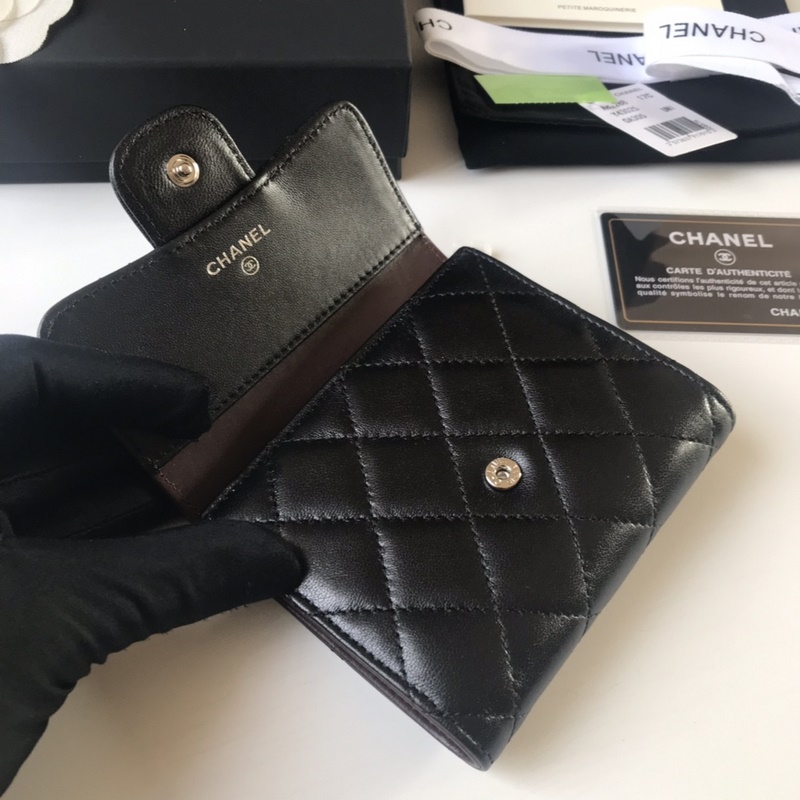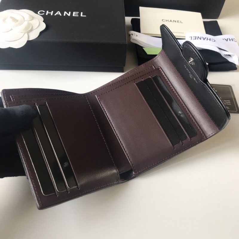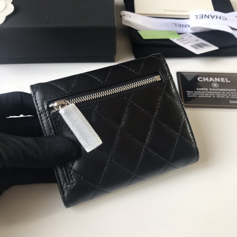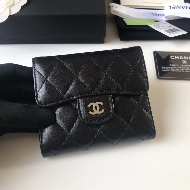 CHANEL klassinen kolminkertainen lyhyt lompakko, mallinumero A82288. Timanttikuvio. Laadukkaat materiaalit ja laitteistot. Kauniita yksityiskohtia. Koko 10,5-11,5-3 cm. Väri: hopea.