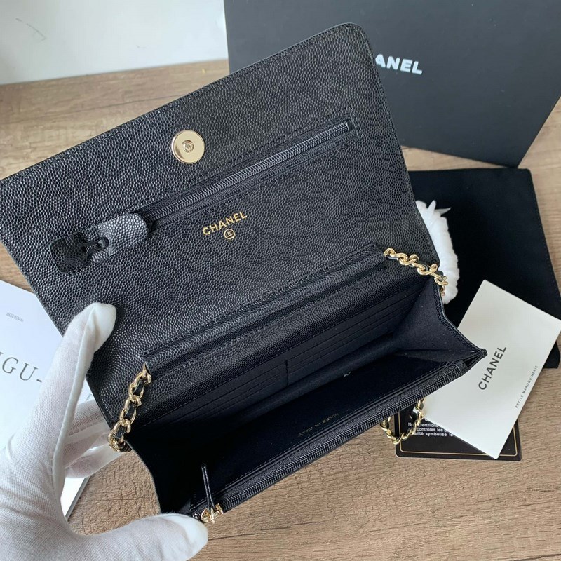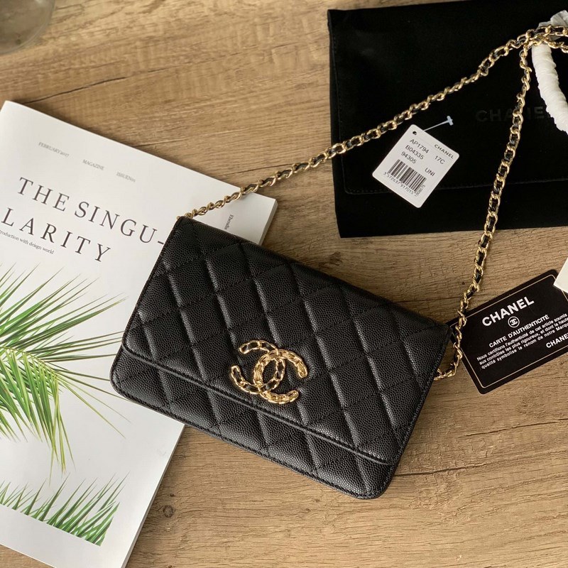 Den senaste woclogo är större än den klassiska. Hälften är gjord av läder och den andra hälften är gjord av guldkedja. Mycket känslig, med flera kedjejusteringar för små ryggar. Superpraktisk klassisk liten axelväska. Delikat och mångsidigt. Mycket lätt. Läder: Kaviarläder