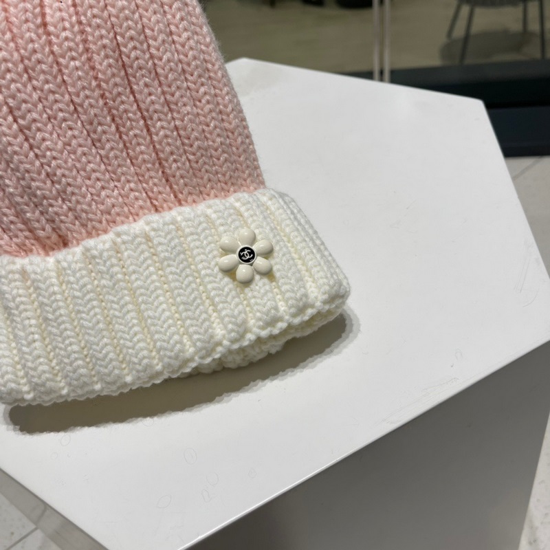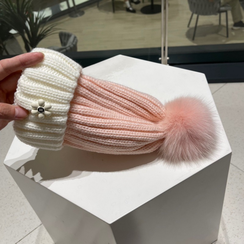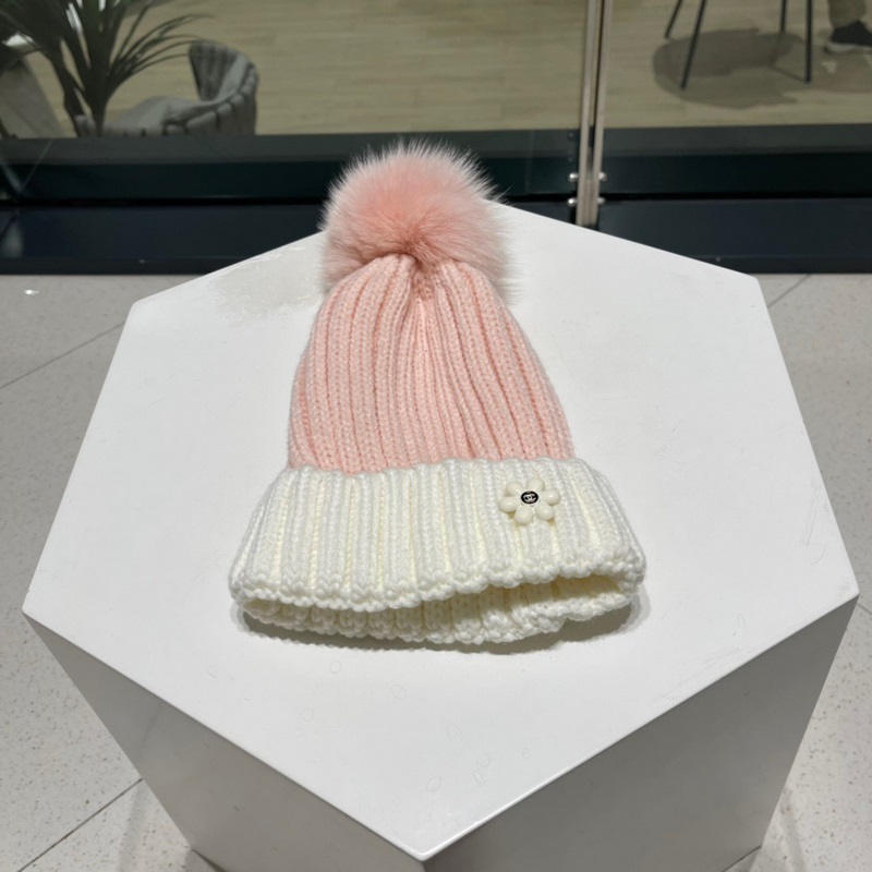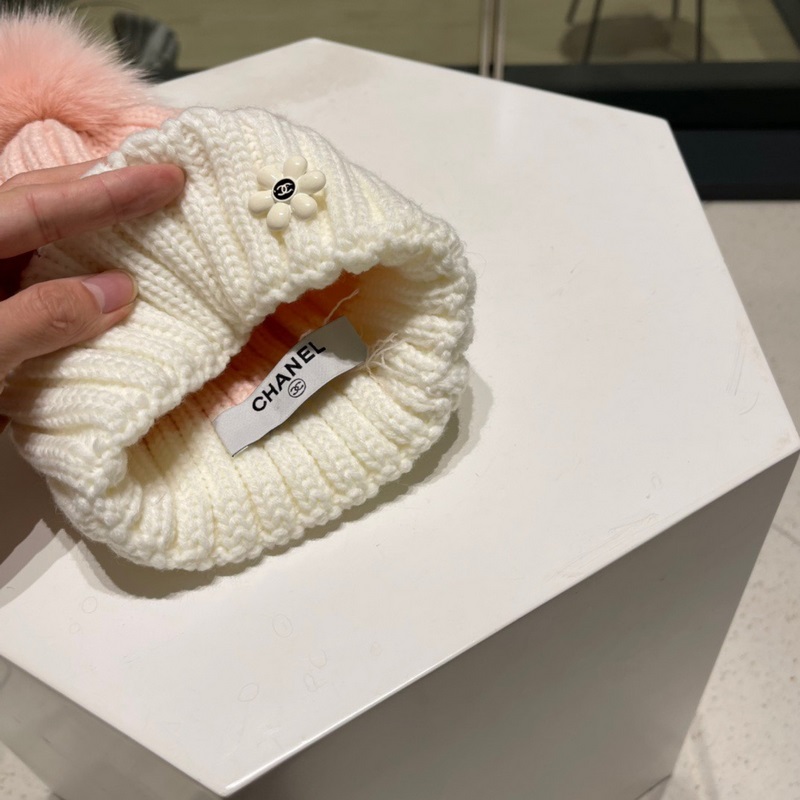 CHANEL Chanel superklassikko syksyn ja talven tiskineulottu villahattu, all-match -tyyli on erittäin suosittu, kettuturkispallon pintakuvio ensiluokkainen, saa kasvot näyttämään pieniltä ja helposti yhdistelmiltä