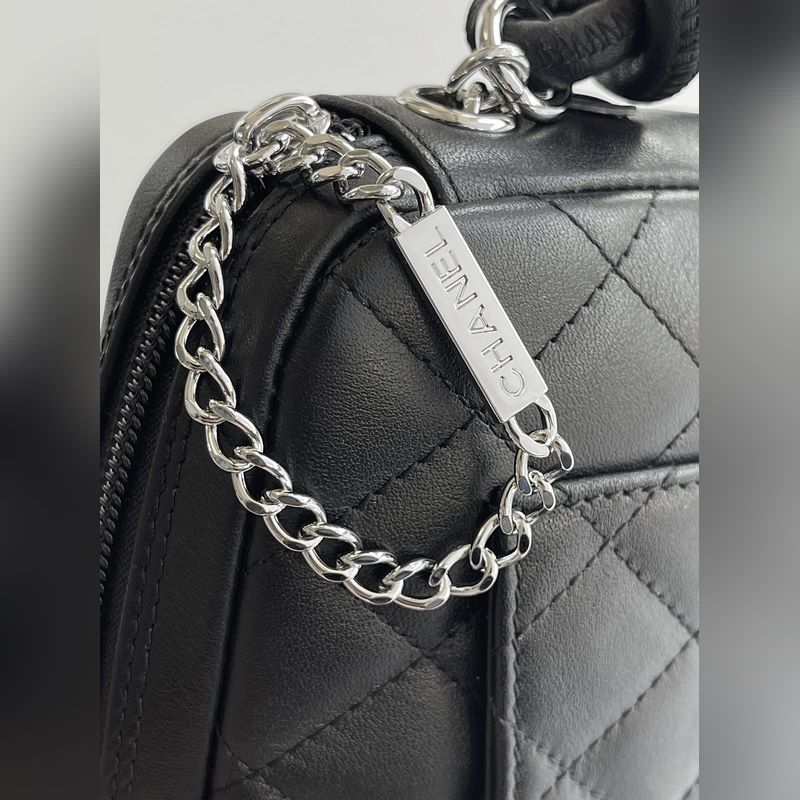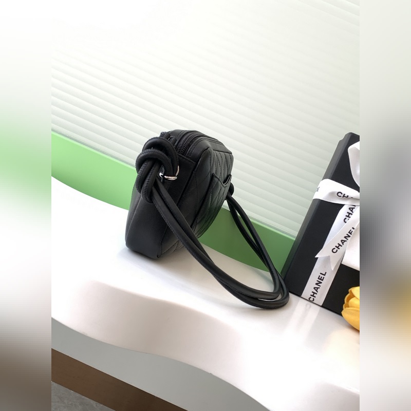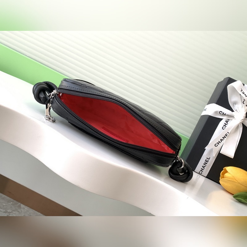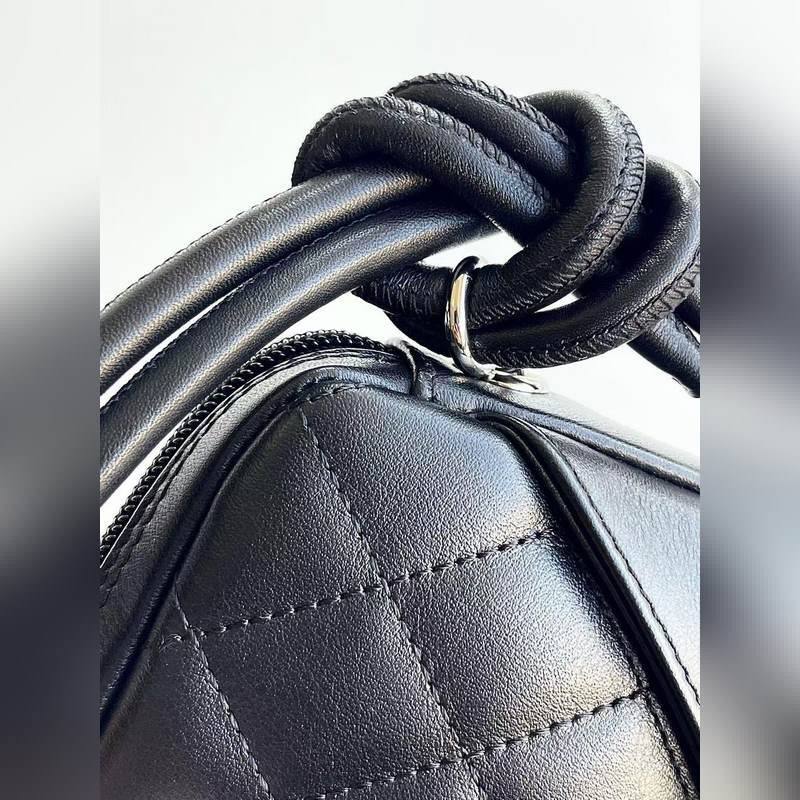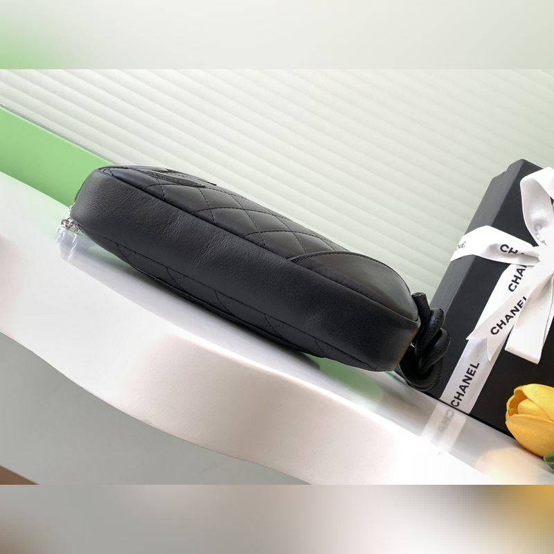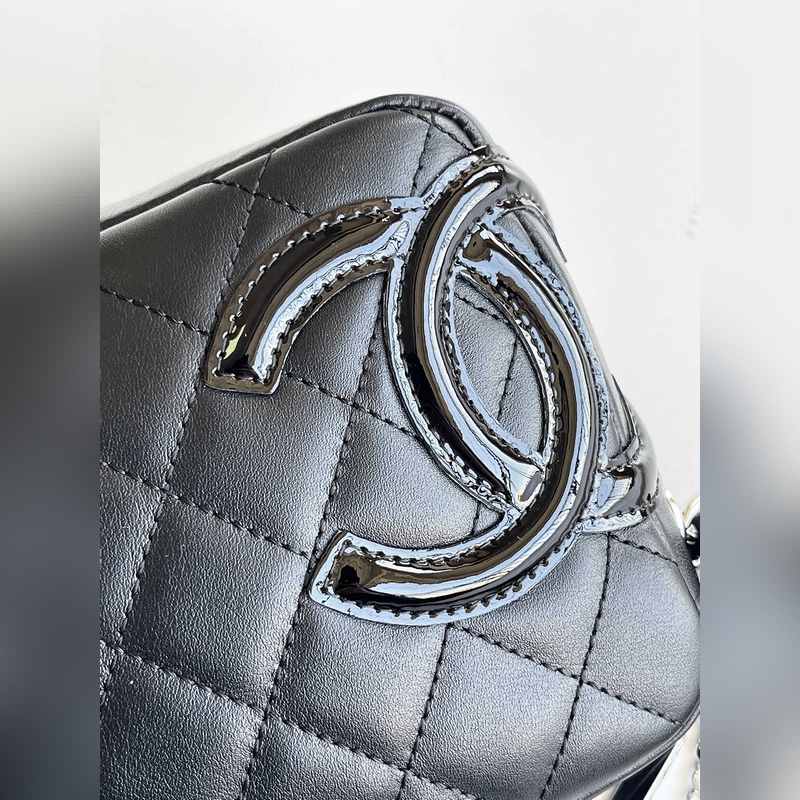 Chanel Conro -sarjan musta, kiiltonahka ja musta pandavärinen kainalolaukku