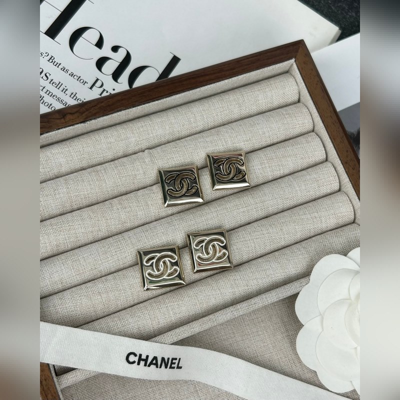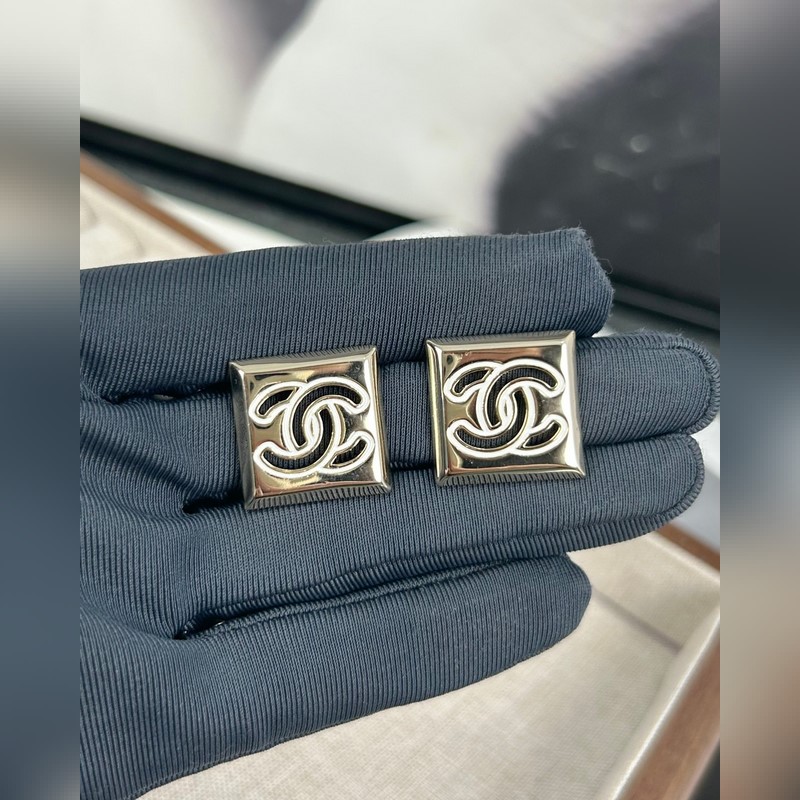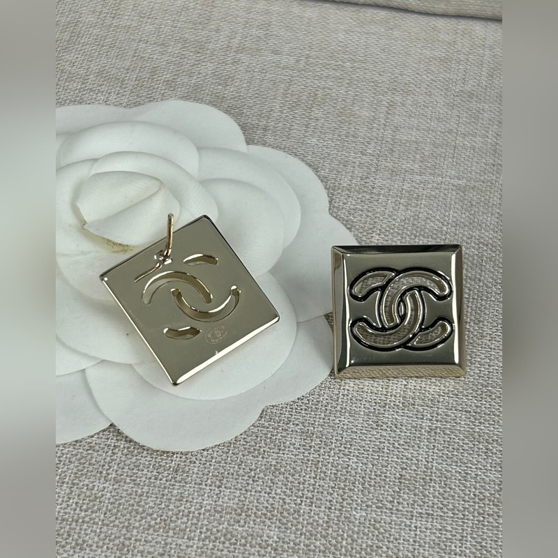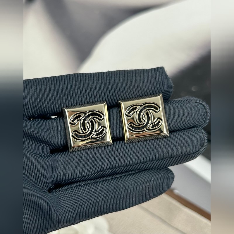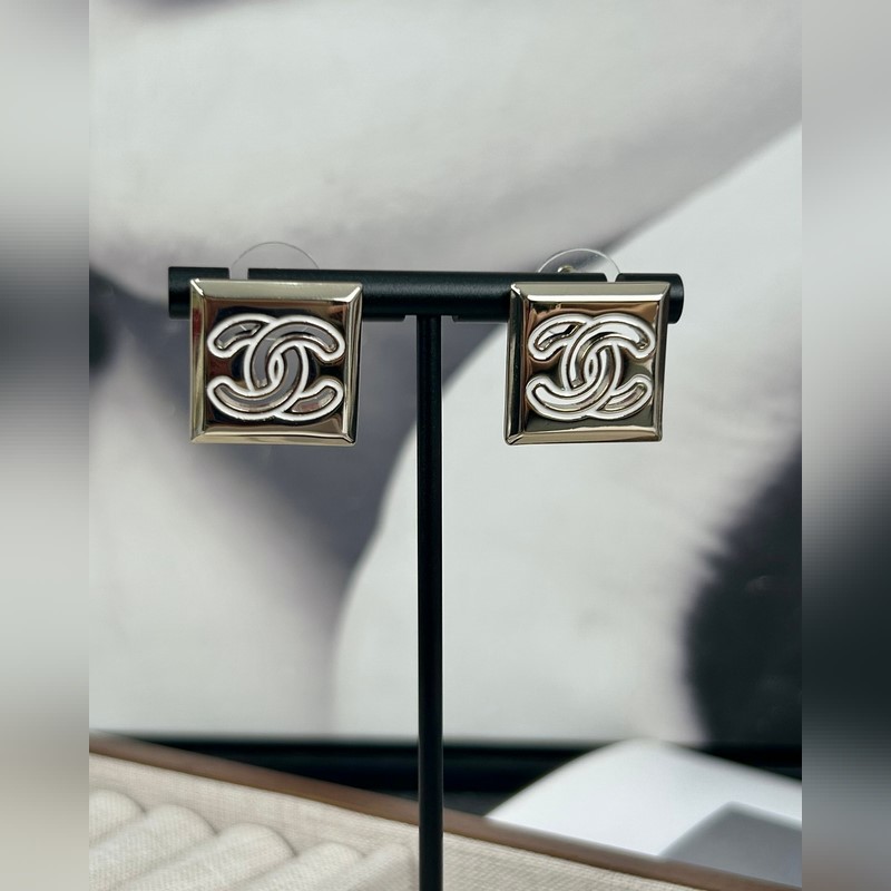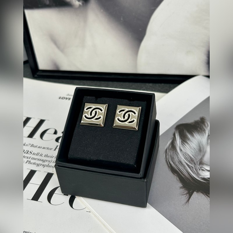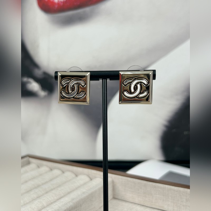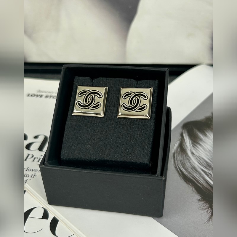 Chanel neliönmuotoiset kiiltävät musta/valkoiset tippareunaiset ontot kaksois-c-korvakorut