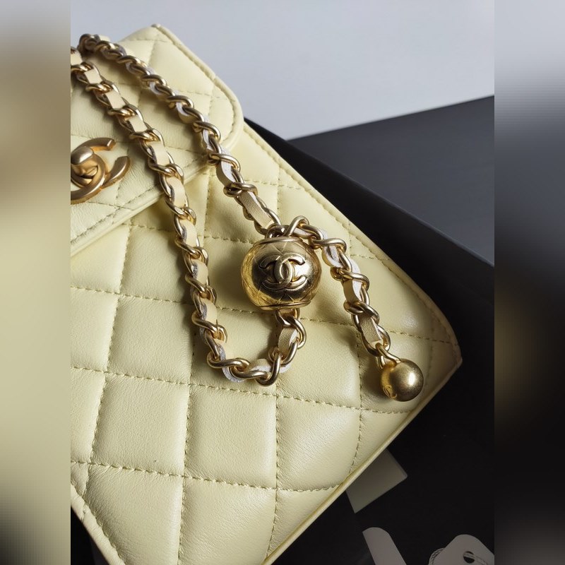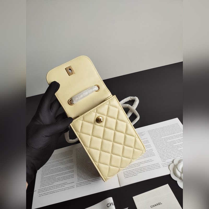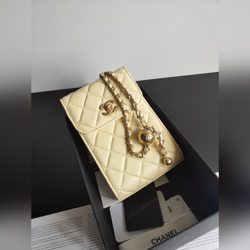 Chanel Double C lampaannahkainen kultahelmiketju säädettävä matkapuhelinlaukku ketjulaukkuKoko: 18*12*6cm